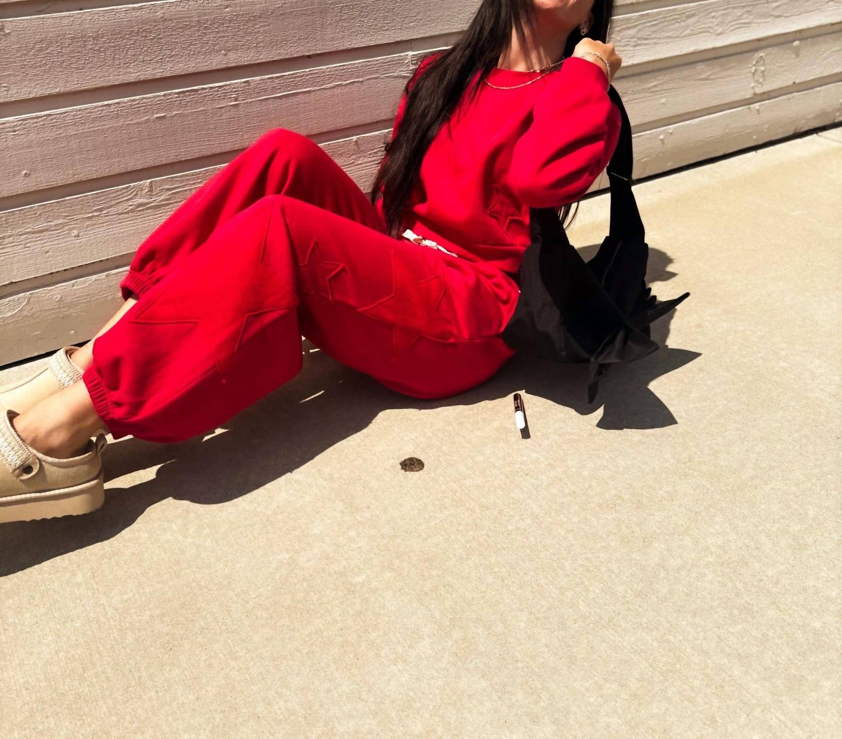 No gym necessary for these cool-girl joggers. Introducing the Scarlet Star Fleece Jogger by Vintage Havana, a perfect blend of comfort and style for your casual wardrobe. These joggers feature a tapered leg and a playful star applique for a fun twist. With a pull-on closure and practical pockets, they are crafted for easy wearability. Made for vacation-ready style, care for them is simple with machine wash and tumble dry instructions, fitting right into your athleisure trend.