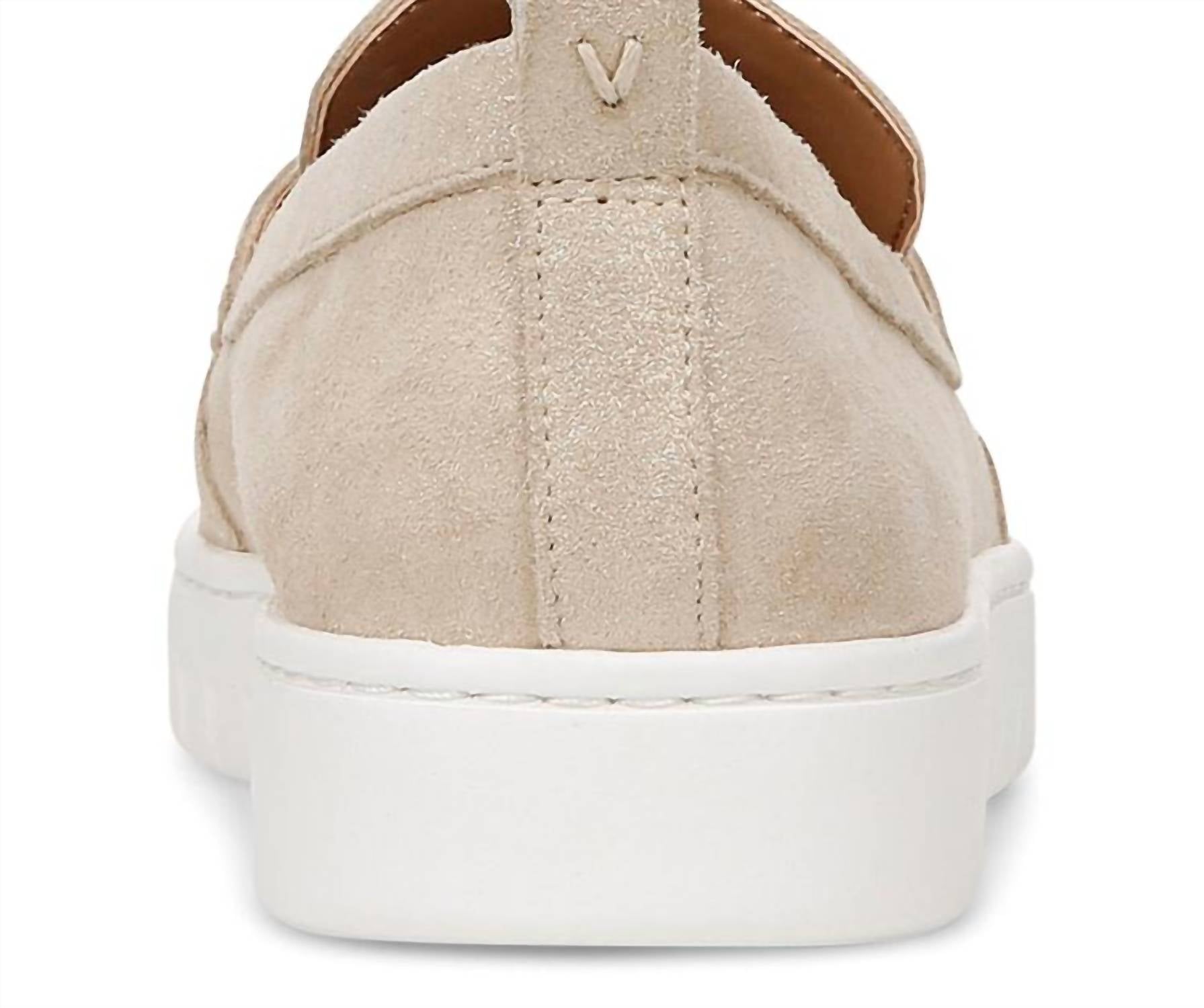 A preppy yet feminine take on the classic loafer. Step into spring with the VIONIC Women's Uptown Loafer, a perfect blend of comfort and style. Crafted in chic gold leather with a suede finish, these loafers feature a round toe for added elegance. With a heel height of 1.12 inches, they're ideal for vacation and streetwear occasions, making them an essential addition to your Easter wardrobe. Embrace the season with these versatile flats, perfect for any adult woman who seeks both fashion and function.
