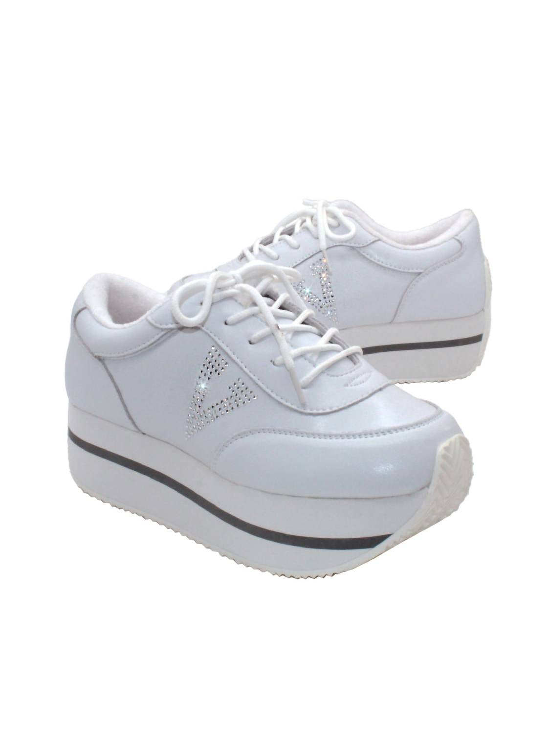 When fashion and function come together seamlessly. Experience the retro charm of the Women's Expulsion Shoe by VOLATILE, a platform lace-up sneaker perfect for your spring adventures. Crafted with a leather or suede upper and featuring a rhinestone “V” detail, this stylish shoe elevates your look with a 2” wedge height and 1.5” platform. Comfortable with a plush terry cloth textile lining and padded insole, the shoe also boasts an EVA wedge and manmade outsole. Ideal for boho chic vibes, these sneakers pair effortlessly with jeans or cargo pants.