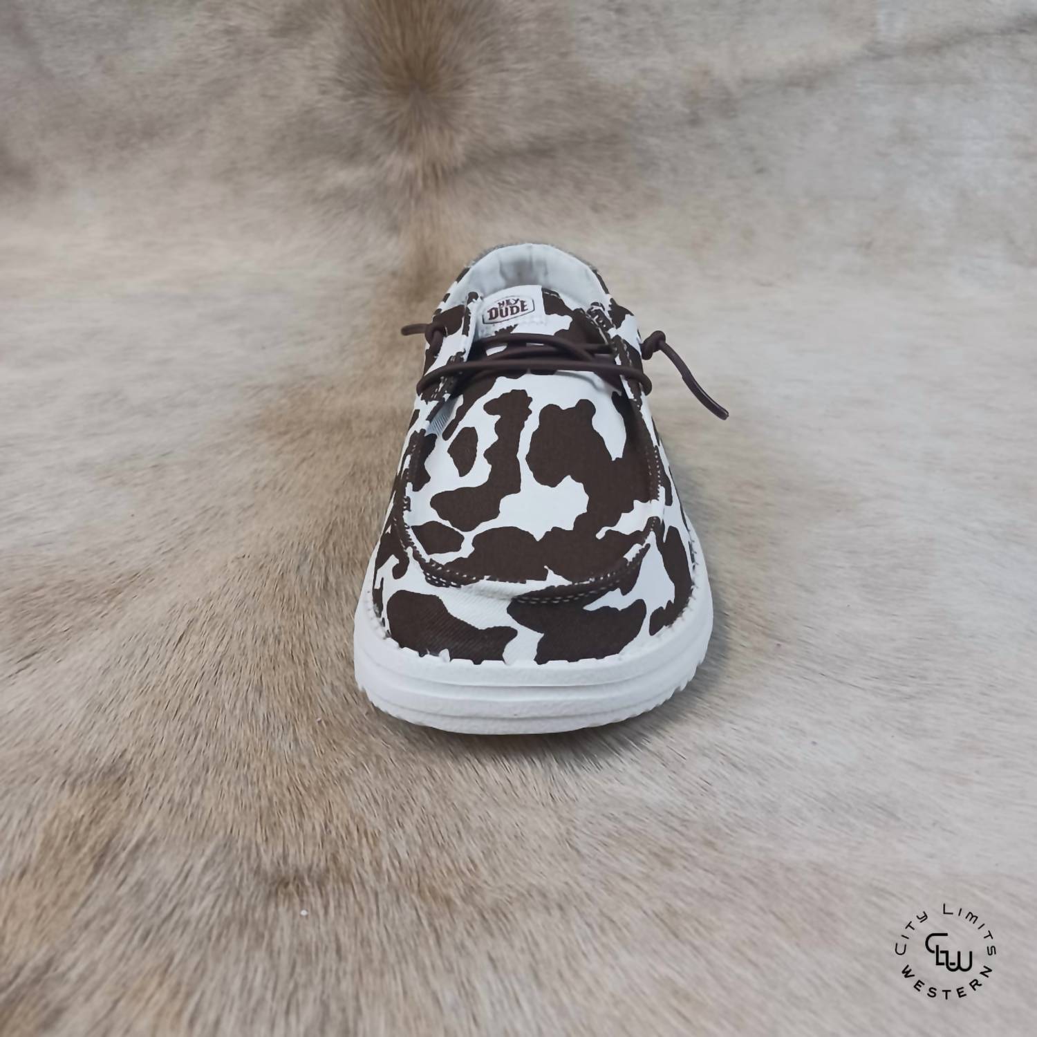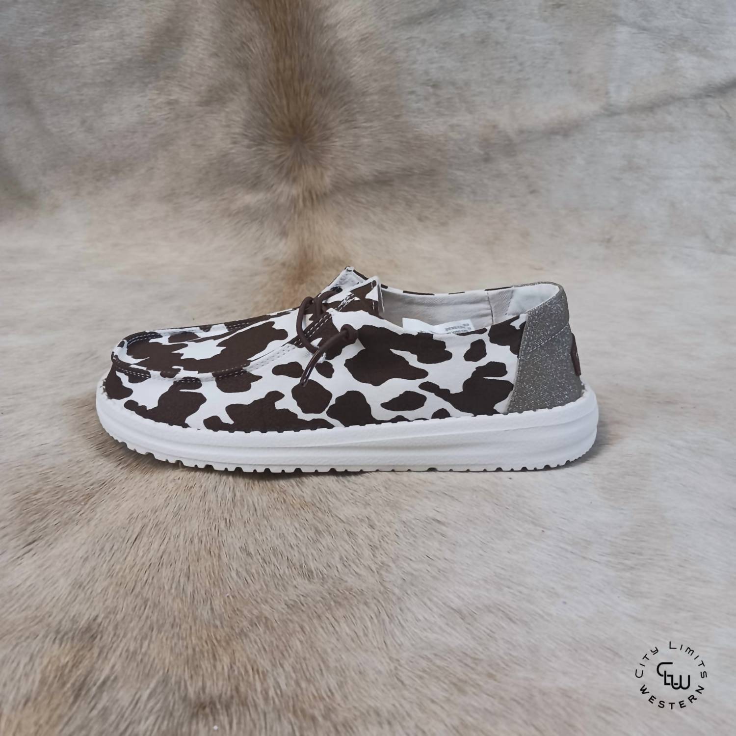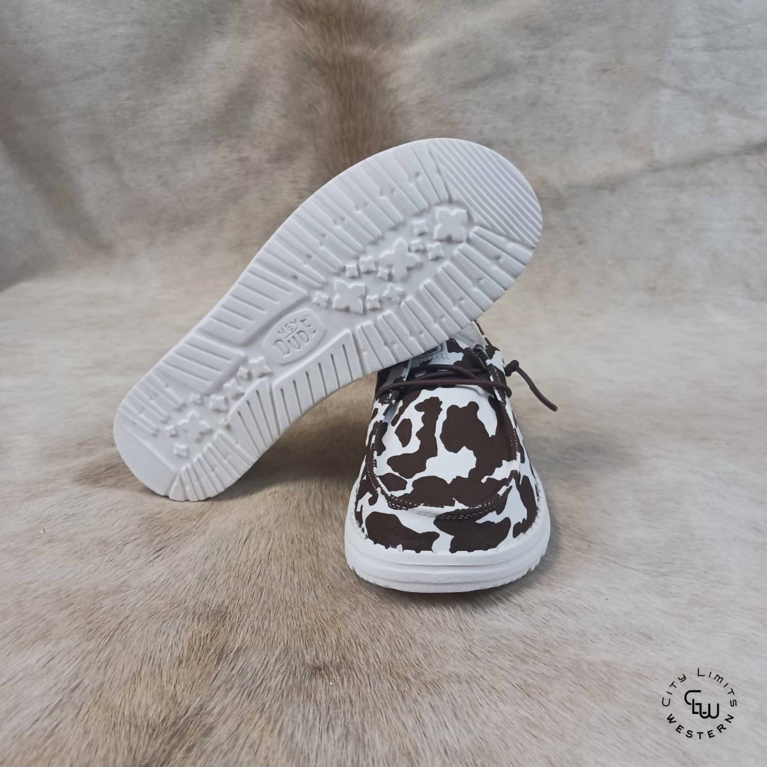 The Kid's Cowgirl Sparkle Shoe by HEY DUDE is a delightful addition to any little girl's wardrobe. Designed with a slip-on style and stretch lace for easy wear, these sneakers boast a charming canvas printed upper with a glitter heel for a touch of sparkle. The relaxed fit and removable foam insole ensure a comfortable experience, while the water-repellent treatment keeps them practical for all-day adventure. Perfect for summer holiday parties, these brown and white sneakers are both fashionable and travel-ready.