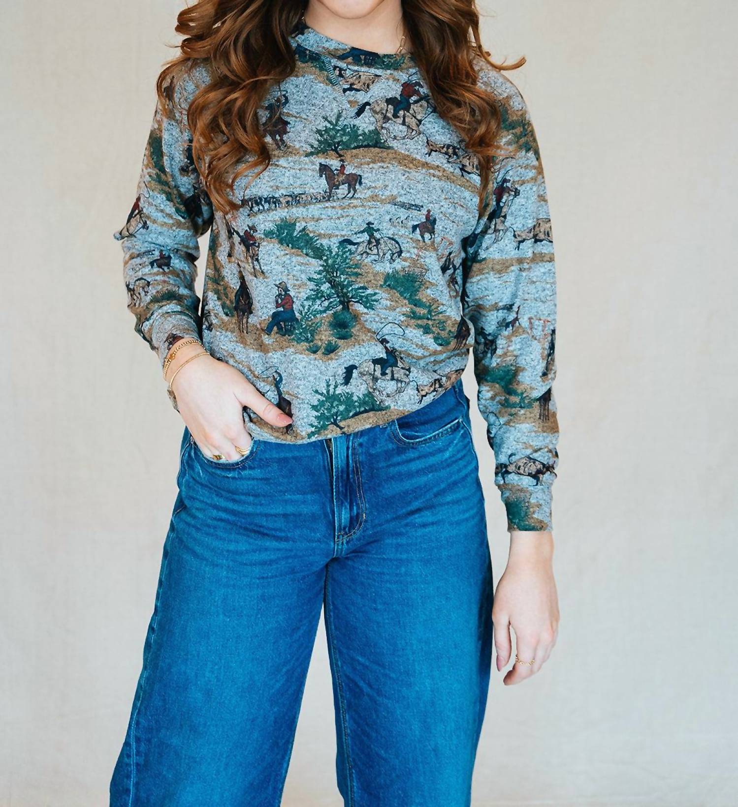Cozy fabric, impeccable design - Meet the sweatshirt that you'll never want to take off. Step into Western flair with the Cowboy Up Pullover Sweatshirt by Tasha Polizzi, available in a versatile gray. This women's sweatshirt showcases long sleeves and an eye-catching paisley pattern, expertly crafted in soft cotton for optimum comfort. The crewneck design and pull-on closure ensure easy wear, making it a natural choice for casual outings or cozy evenings. Care is simple with machine wash instructions, guaranteeing effortless maintenance.