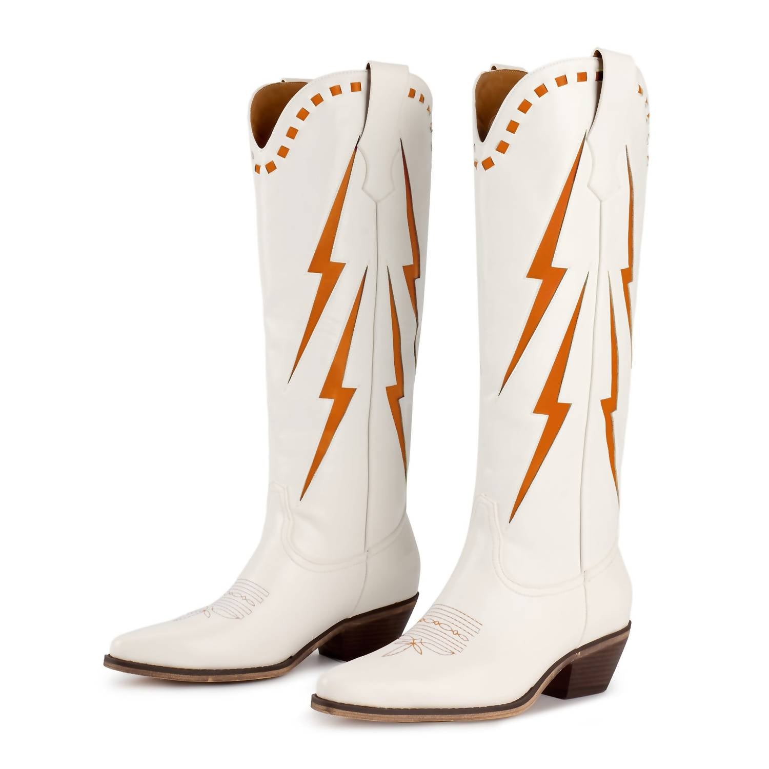Say hello to the perfect, most versatile boot. The ankle height makes this style easily transition from day to night. Wear them with your favorite skinny jeans and tee for a more laid back look, or pair them with your favorite mini dress and jacket for a night out on the town. Introducing the Women's The Magnolia Cowboy Boot by Marfa Boots, a chic choice for the style-savvy individual. Crafted from orange faux leather, these boots feature a pointed toe and a comfortable block heel, offering both elegance and ease. Embrace a Western trend with delicate embroidery that adds a feminine touch, perfect for occasions like music festivals or Thanksgiving events. Ideal for pairing with flowy dresses or denim, these medium-width boots are tailored for adult women seeking a modern twist on classic cowboy style.