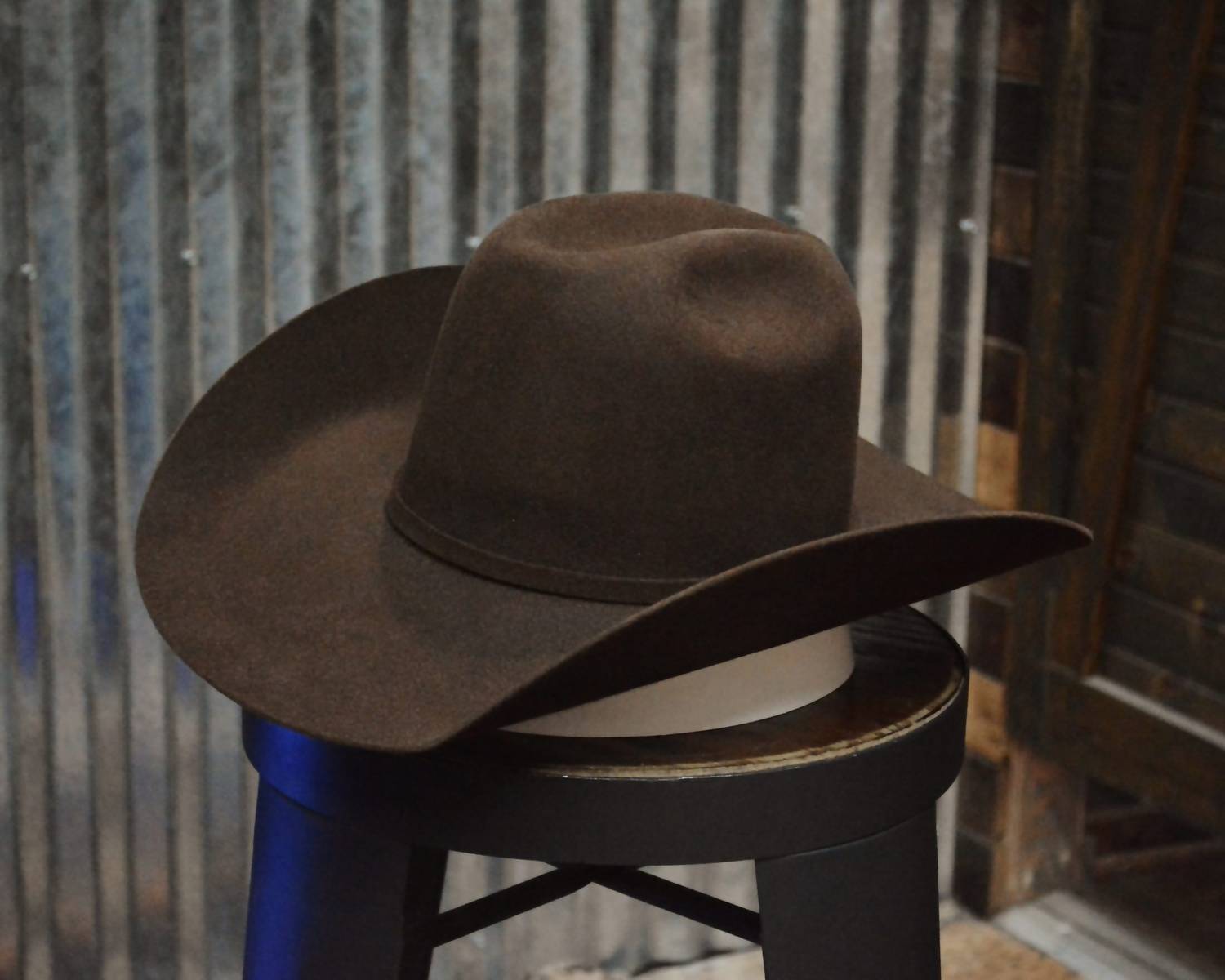 Embrace classic Western style with the 6X Open Crown Felt Hat by Twister Cowboy Hats. Crafted for enduring appeal, this brown hat features a distinguished open crown and a substantial 4 1/4” brim. Perfect for any cowboy at heart, this hat is a testament to quality and style. Ideal for both everyday wear and special occasions.