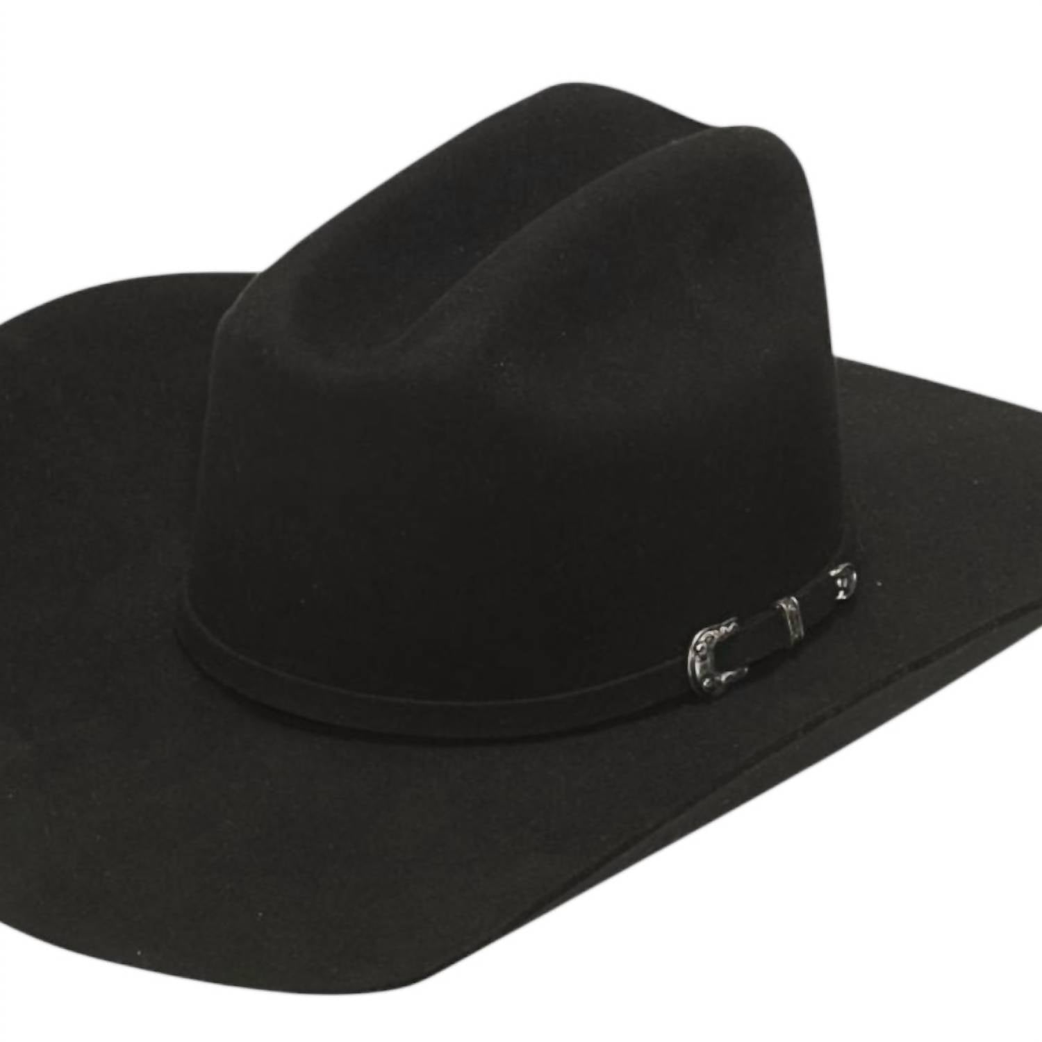 Turn heads in this stylish and chic hat. Not only is this accessory a must for keeping the sun out of your face, it will also be the perfect complement to any cute warm-weather outfit. The Twister 5X Australian Wool Blend Hat by Twister Cowboy Hats is a timeless accessory available in classic black. This hat features a self-band with a three-piece buckle set hatband and a leather sweatband for superior comfort. With a crown and brim both measuring 4-1/4 inches, it is designed to provide unparalleled quality and durability, making it suitable for both dressed-up events and casual outings. Available in sizes ranging from 6-3/4 to 7-5/8, each hat is individually boxed for added protection.