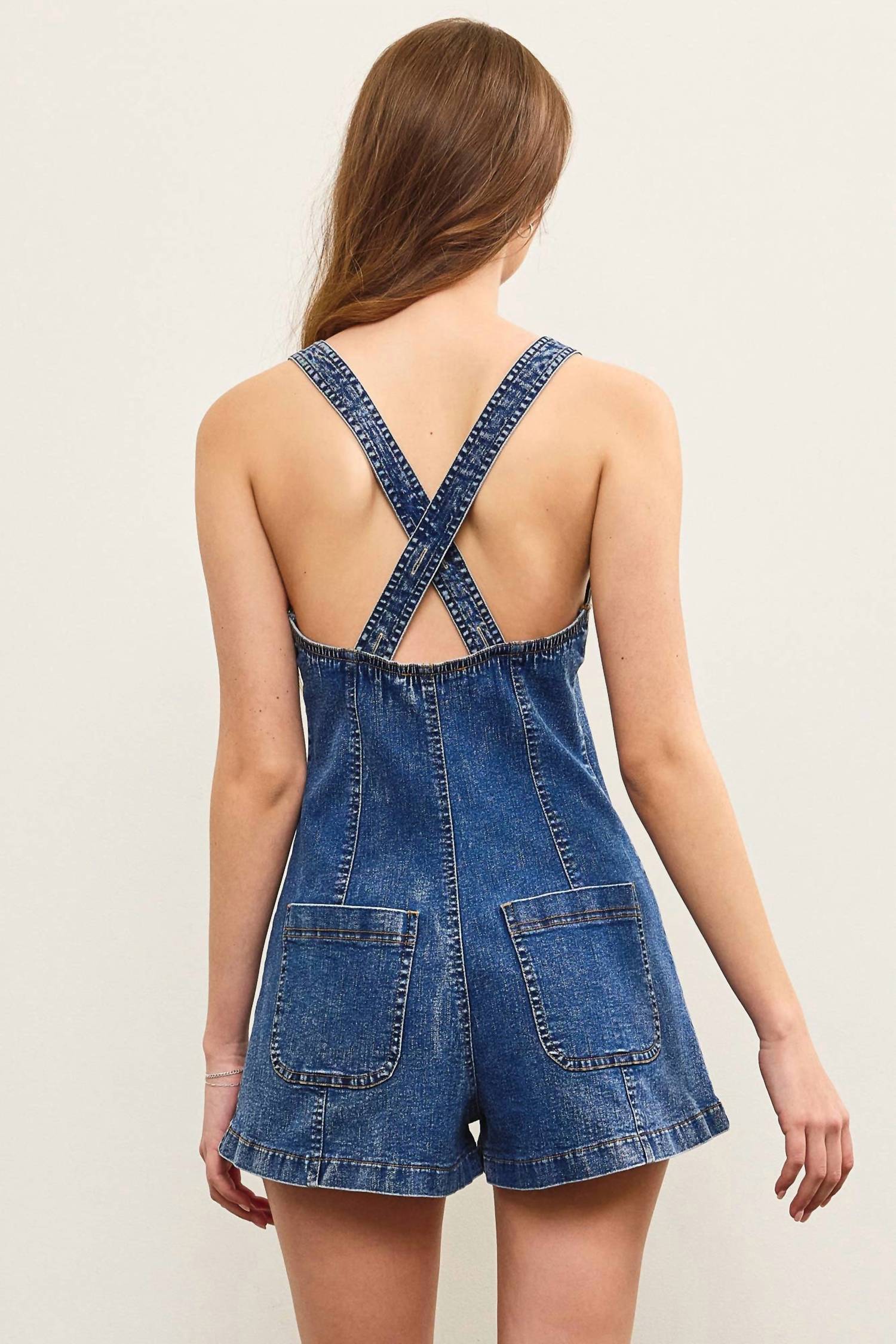 The perfect outfit choice when you you need something quick to throw on and still want to look efforlessly cool. Introducing the Rodeo Ready Denim Romper by Mustard Seed, a perfect combination of Western charm and modern edge. This features wide shoulder straps, crafted in a medium wash denim composed of 70% Cotton, 28% Polyester, and 2% Spandex. Its flattering fit is highlighted by seamed panel detailing and a crisscross adjustable back for comfort, finished with a button front closure. Designed for all-day wear, the romper's fabric offers good stretch and is machine washable, ideal for casual summer outings. Model is 5’9”, 32-24-34, wearing a size small.