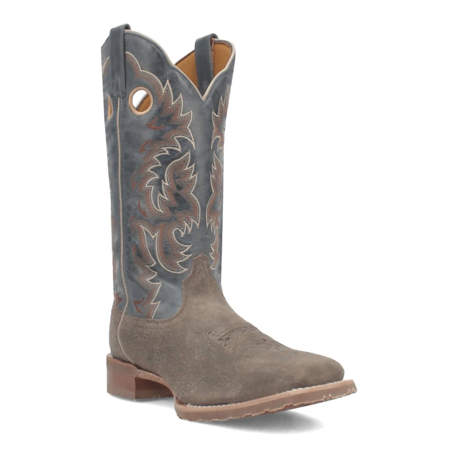 Step up your western style with the Laredo Men's Summit 13" Cowboy Approved Boot, crafted from durable leather in a striking grey and blue colorway. Featuring a wide square toe and a comfortable 1" stockman heel, this boot offers traditional charm with a contemporary twist. The comfortable removable orthotic insole ensures all-day support, while the heat and oil-resistant rubber outsole delivers reliable traction and stability on any surface. With its classic design and superior comfort, this cowboy boot is a standout addition to any collection.
