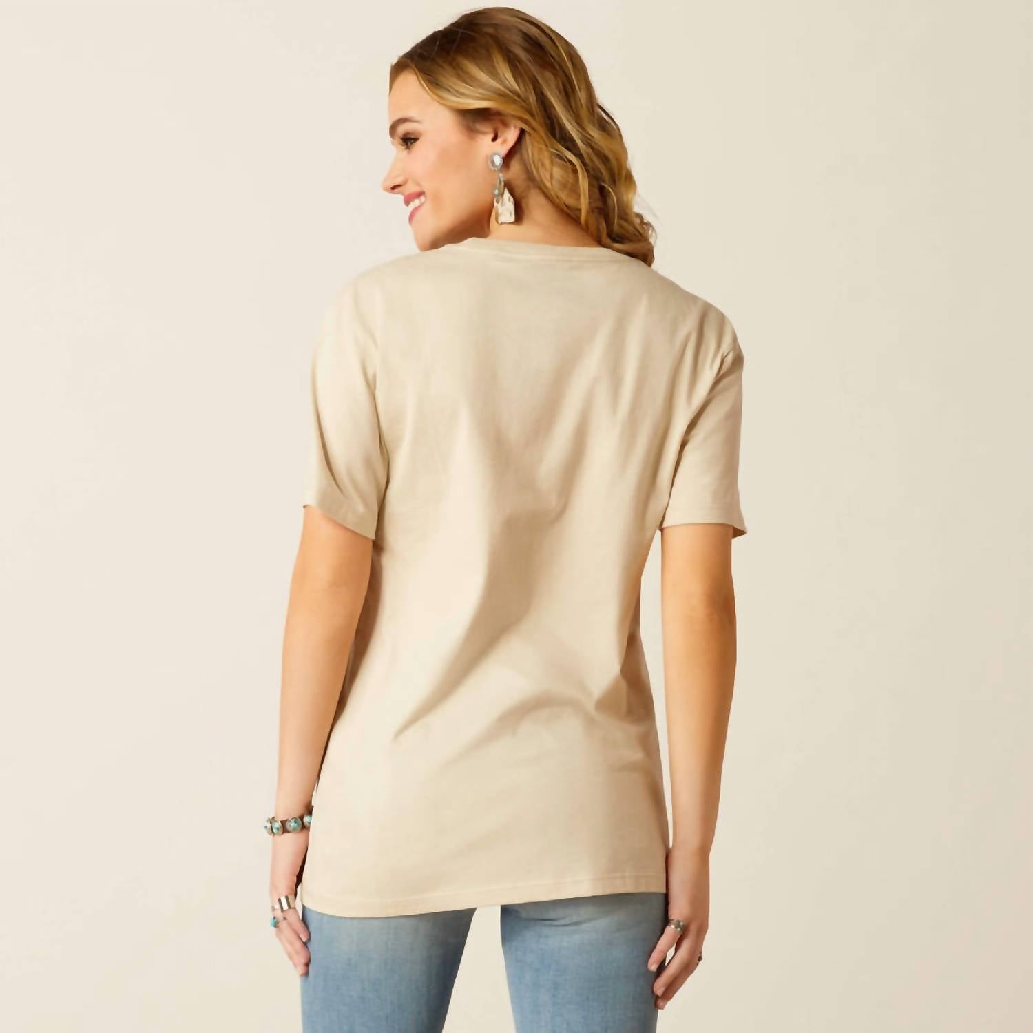 Timeless piece in a natural hue designed for optimal comfort and style. Crafted from 100% cotton. Providing a soft, breathable fit. Crew neckline design and graphic screen print detail. Offers a relaxed pull-on closure with extra room in the shoulders for ease of movement. Combines casual elegance with practicality.