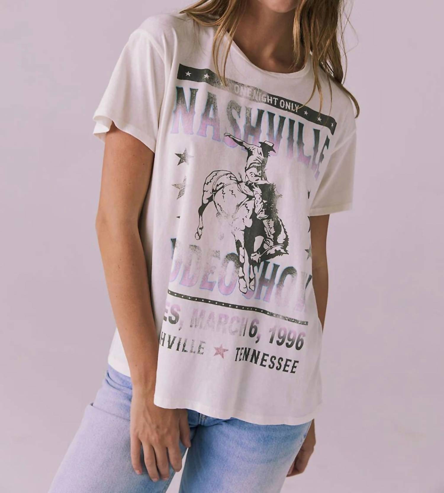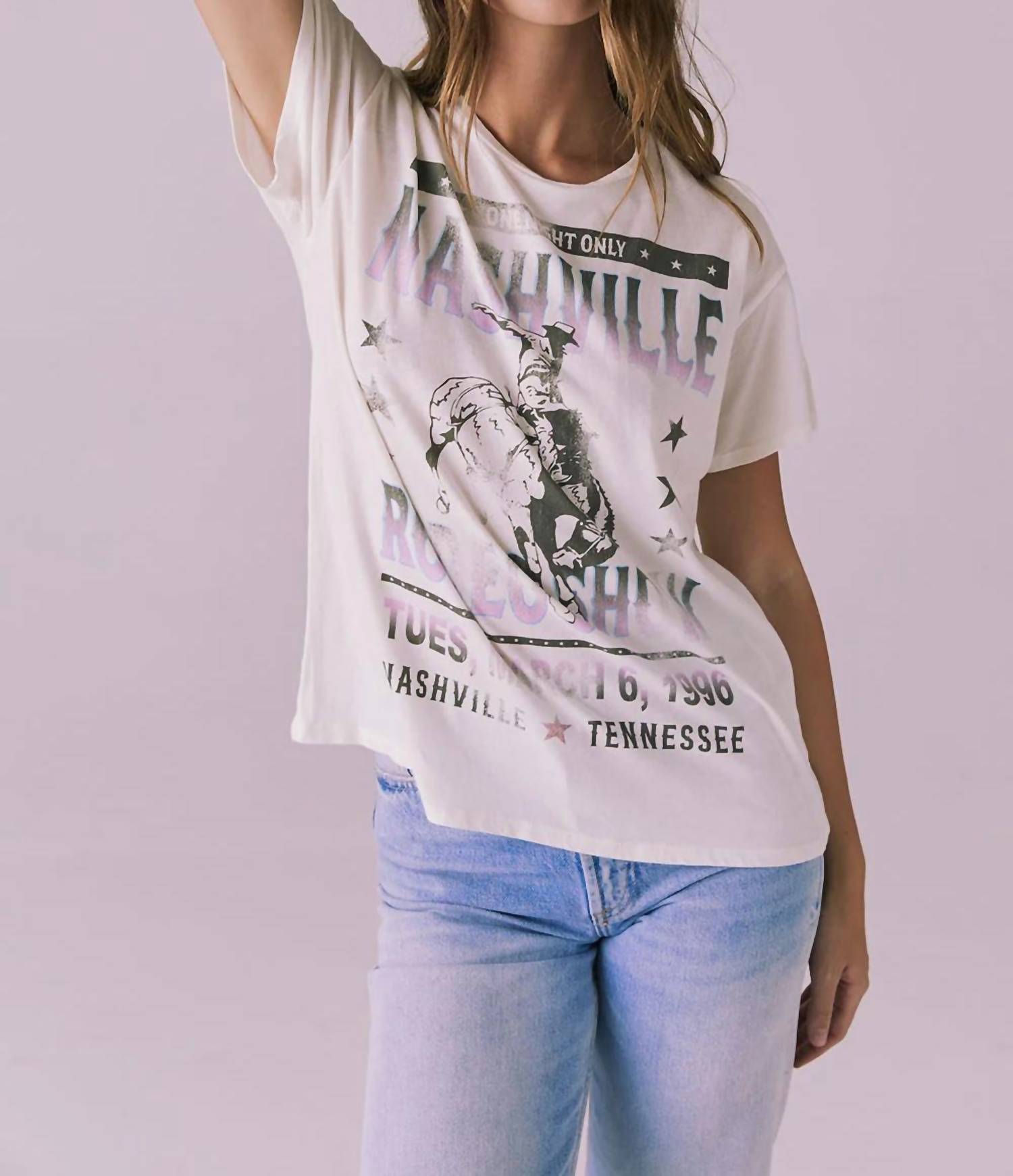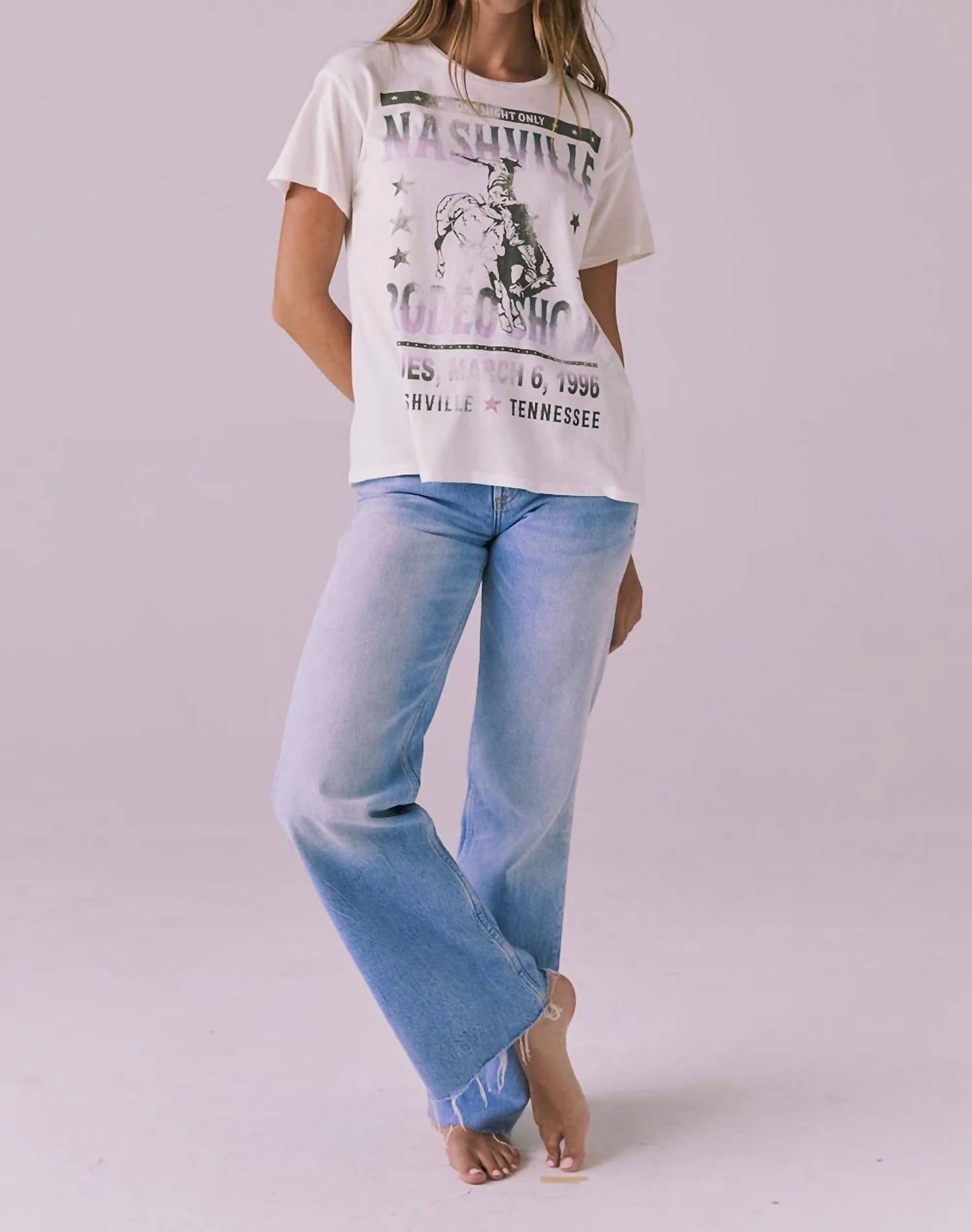 Look no further, you just found your perfect tee! Embrace your western spirit with the Chaser Nashville Rodeo Top, a short sleeve tee that beautifully captures vintage allure. Crafted from 100% Cotton, this graphic tee showcases a starry white hue, transporting you straight to Nashville. Imported and featuring a convenient pull-on closure, this crewneck design is ideal for any casual spring vacation. Care for it with machine wash instructions for continued enjoyment. Model is 5'9" and wearing size small.