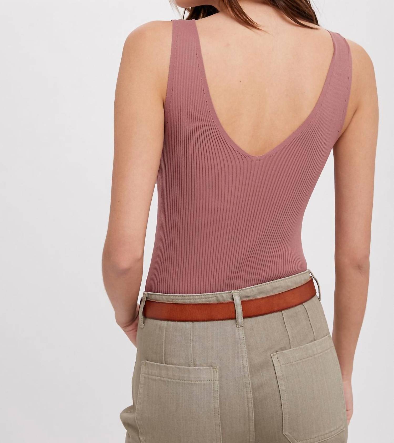 Who doesn't love a good bodysuit? Elevate your holiday party style with the Ribbed Knit Sleeveless Bodysuit by WISHLIST in a trendy Avocado hue. This sleek piece features a V-neck and a textured design made from 100% polyester, ensuring both comfort and a minimalist aesthetic. Perfect for any occasion, this bodysuit is an ideal addition to your summer wardrobe. Closure and wash instructions are not specified.
