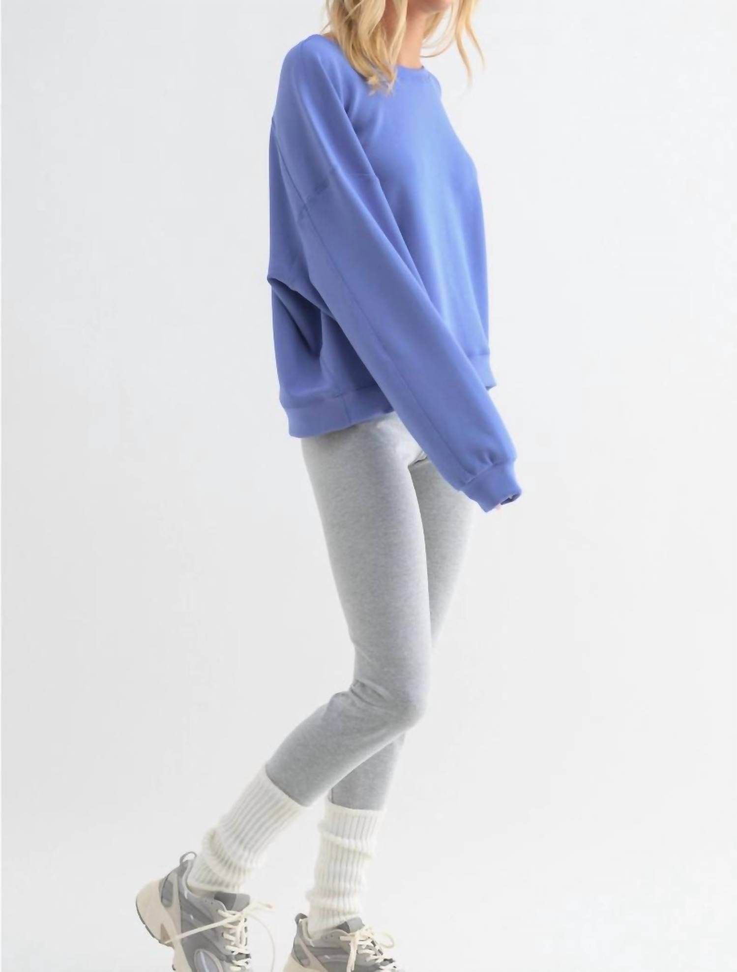 Cooler temps call for layering and we love this adorable sweatshirt for all the obvious reasons. Introducing the Scuba Relaxed Crop Sweatshirt by WISHLIST, a coastal blue wonder crafted for both style and comfort. This women's activewear piece features long sleeves and is made from soft rayon, making it perfect for spring outings or lounging at home. With its minimalist solid pattern and crewneck design, it's a versatile choice for any casual occasion. Closure is pull-on, enhancing its easygoing charm.