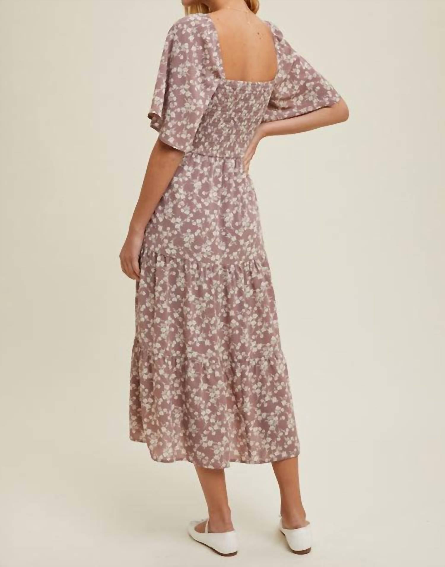 Just add slides or mules and you are good to go. Embrace the Boho Chic trend with the Willow Midi Dress by Wishlist, a stunning A-line piece in an enchanting brown floral pattern. This dress features short sleeves, is crafted from 100% polyester, and offers both style and practicality with tiered design and convenient side pockets. It is a pull-on style that fully embraces the scoop neckline for a relaxed yet elegant look. Designed for springtime celebrations, the dress measures a total length of 48" in size small, making it a perfect choice for your next Thanksgiving gathering.