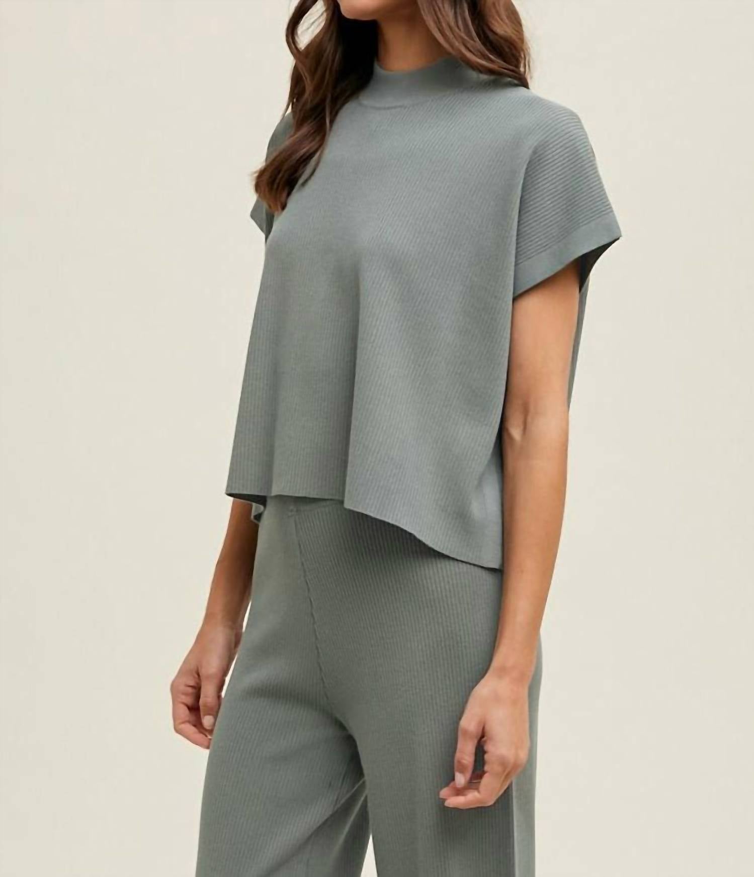 Cozy fabric, impeccable design - Meet the sweatshirt that you'll never want to take off. Embrace comfort and style with the Malti Lounge Top by WISHLIST, perfectly crafted for your autumn wardrobe. This short-sleeve sweatshirt features a mockneck and a loose, boxy fit with a trendy cropped length. Made from a stretchy ribbed fabric composed of 80% Viscose and 20% Nylon, this piece offers a soft feel in a beautiful Faded Olive hue. Closure is a pull-on design, and it's best maintained with a hand wash.