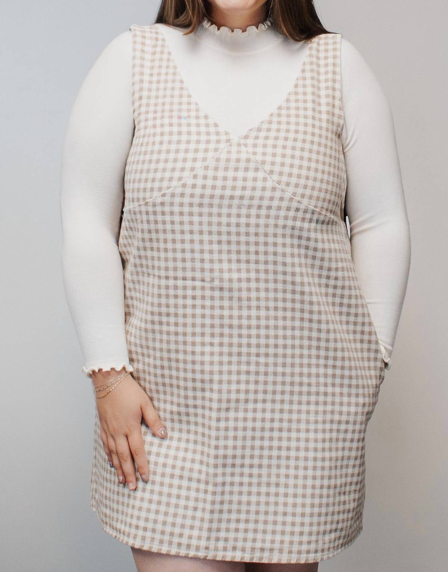 The perfect mini dress for those warmer months. Discover effortless comfort with the Get It Right Gingham Mini Dress by WISHLIST, a sleek spring choice in a soft neutral gingham pattern. This sleeveless, shift silhouette features a stylish V-neck and practical pockets for added functionality. Composition: Machine washable for easy care. Perfect for a holiday party, this piece is designed with attention to detail, ensuring a true-to-size fit for versatile wear.