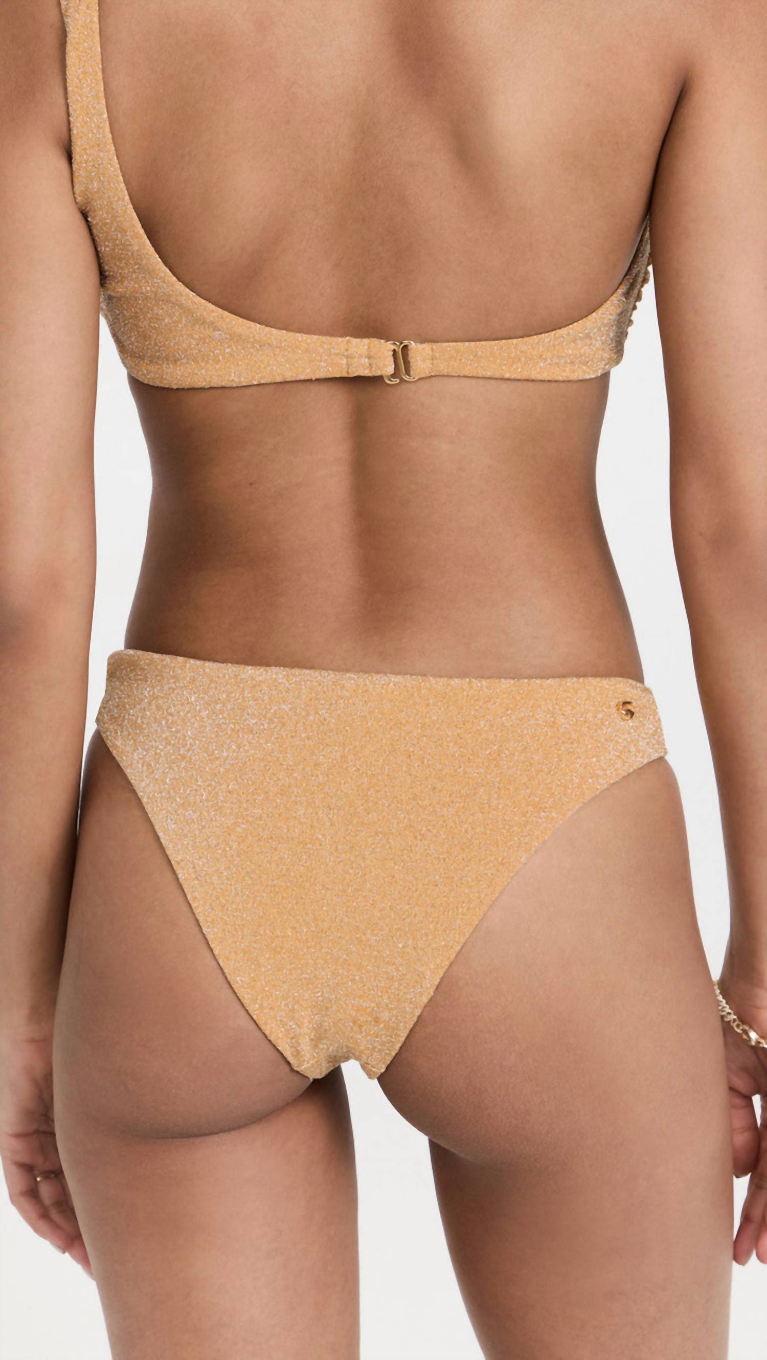 Ruching at sides. Lightly padded cups. Strapless silhouette. Twisted design. Metallic knit. Hook-and-eye closure at back. Shell: 80% nylon/20% elastane. Lining: 89% polyester/11% elastane. Hand wash. Imported, Colombia