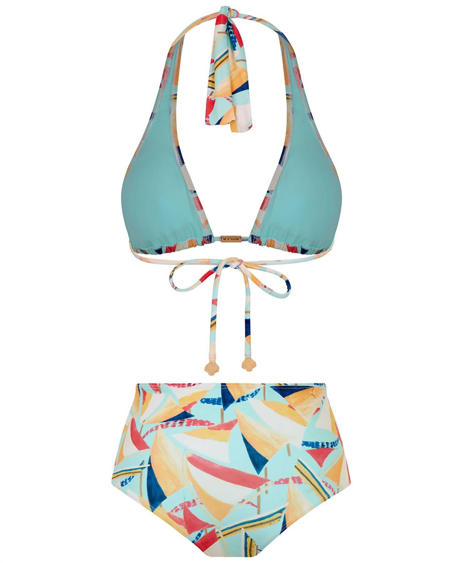 Dream of your next beach getaway in this cute little number. Pair with strappy sandals, a floppy hat, and an oversized tote to complete the perfect vacation look. Classic bikini set, stylish halter top and classic bottom with a slightly high waisted bikini that works great at beachfront, poolside or sailing on a boatTies behind the neck and back;Removable padding;Comfortable fit;Fully lined;Colors and patterns may vary slightly from photo;2-pieces set;Modeled in Size S.Available Sizes: Small to Large 3