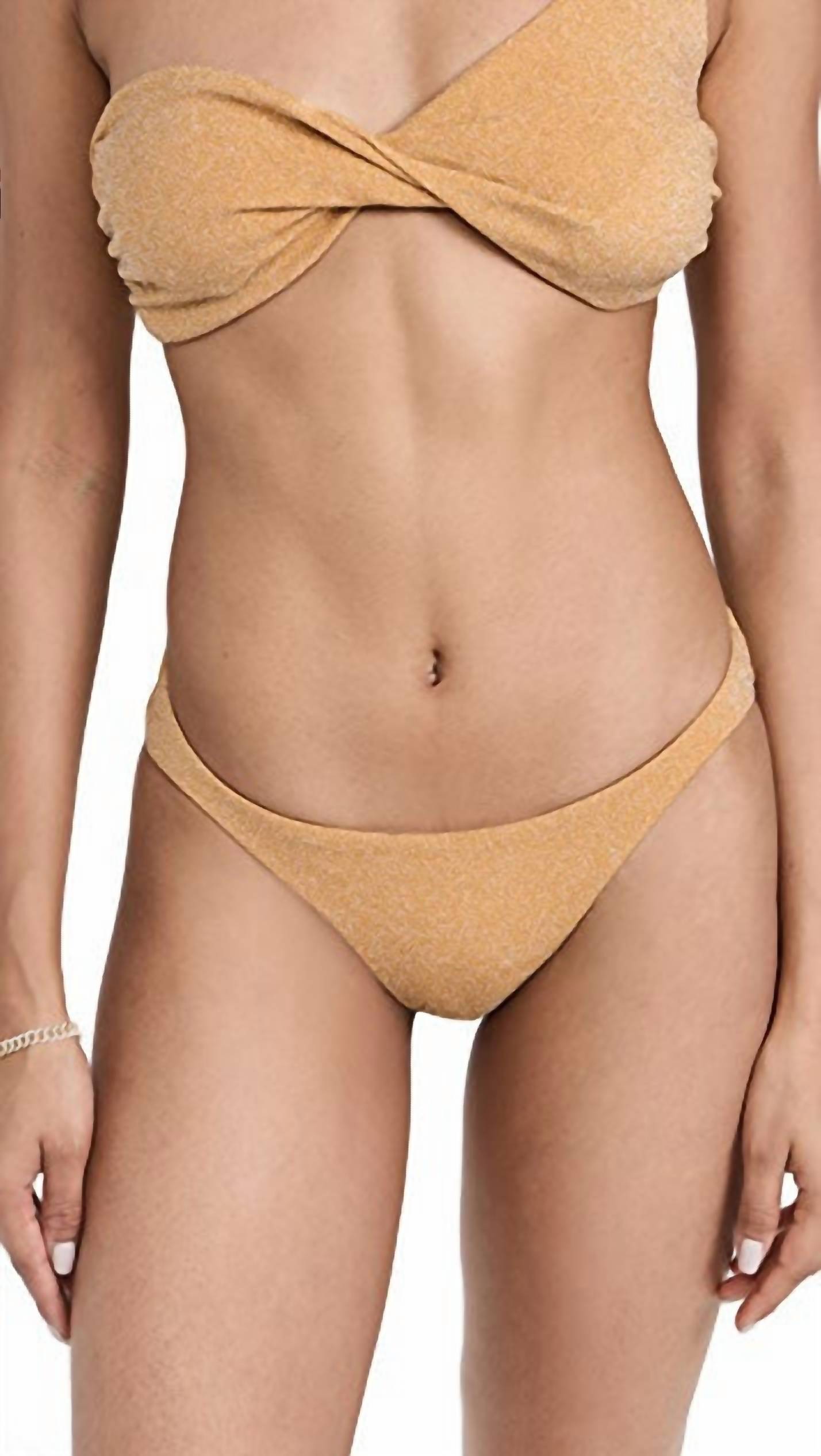 High Cut Bottom Bikini in Glossy Gold! COUNTRY OF MANUFACTURE: Colombia. FIT TIP: Fits true to size.