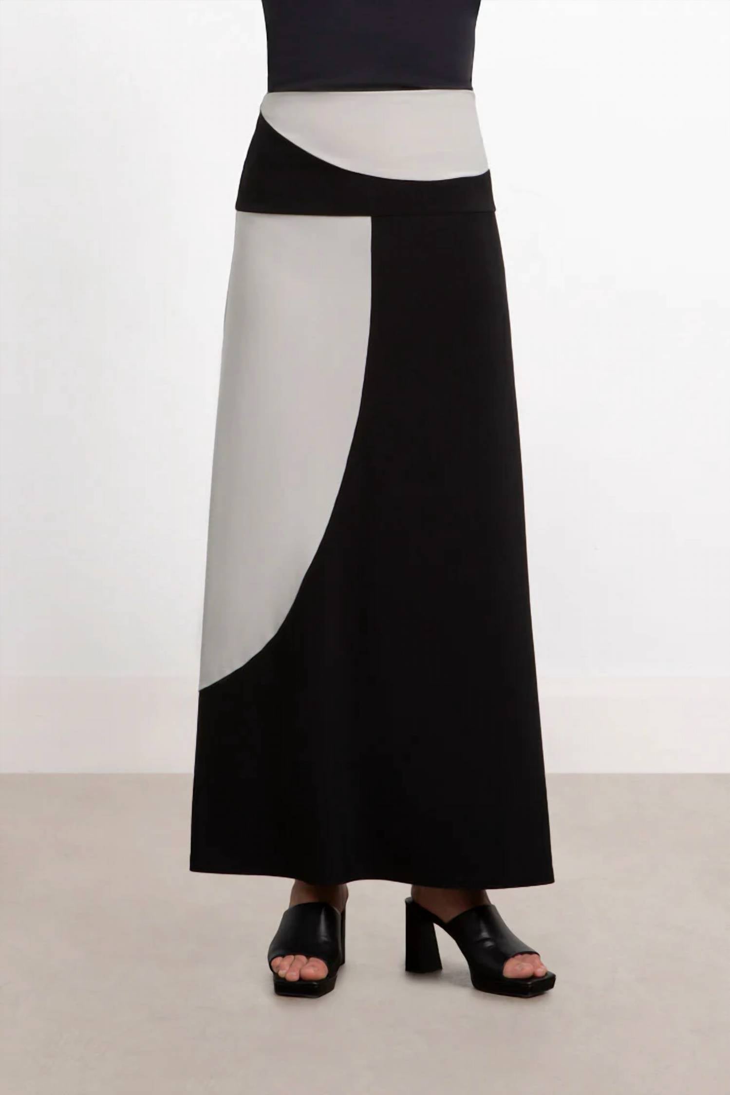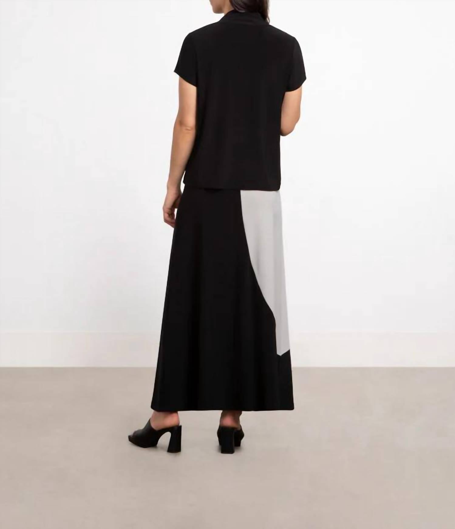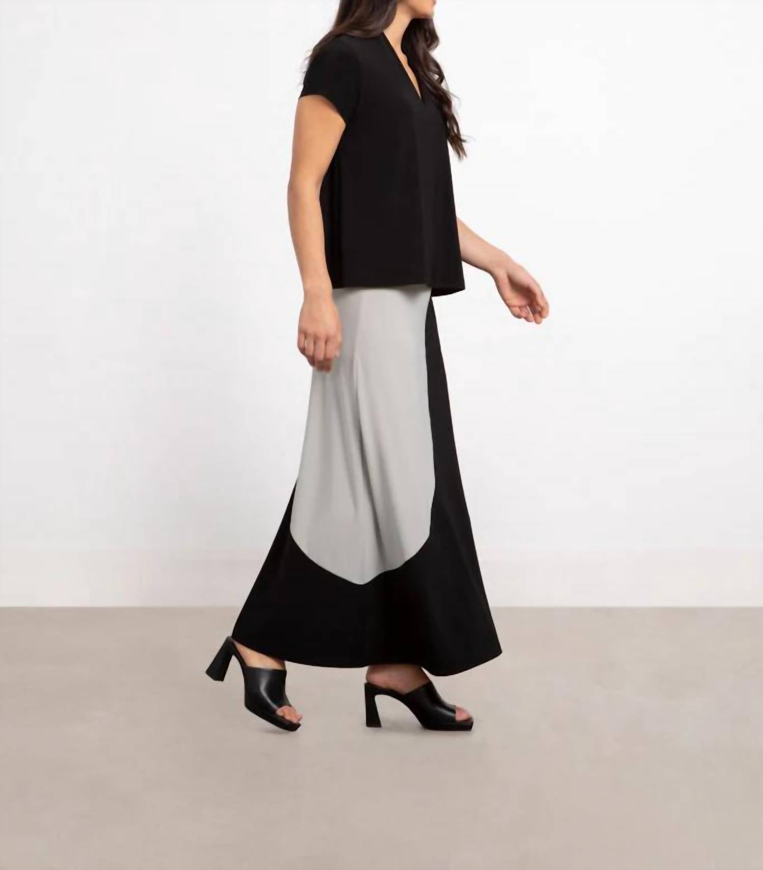 Elevate your fall wardrobe with the Colour Block A-line Skirt by Sympli, featuring a chic sand and black patterned design. This versatile piece is composed of 94% Polyester and 6% Spandex, and can be worn as an ankle-length skirt or a strapless dress. Proudly made in Canada, it offers a smooth waistband with an easy pull-on closure for a sleek fit. Care for your skirt with a machine wash cold and hang to dry.