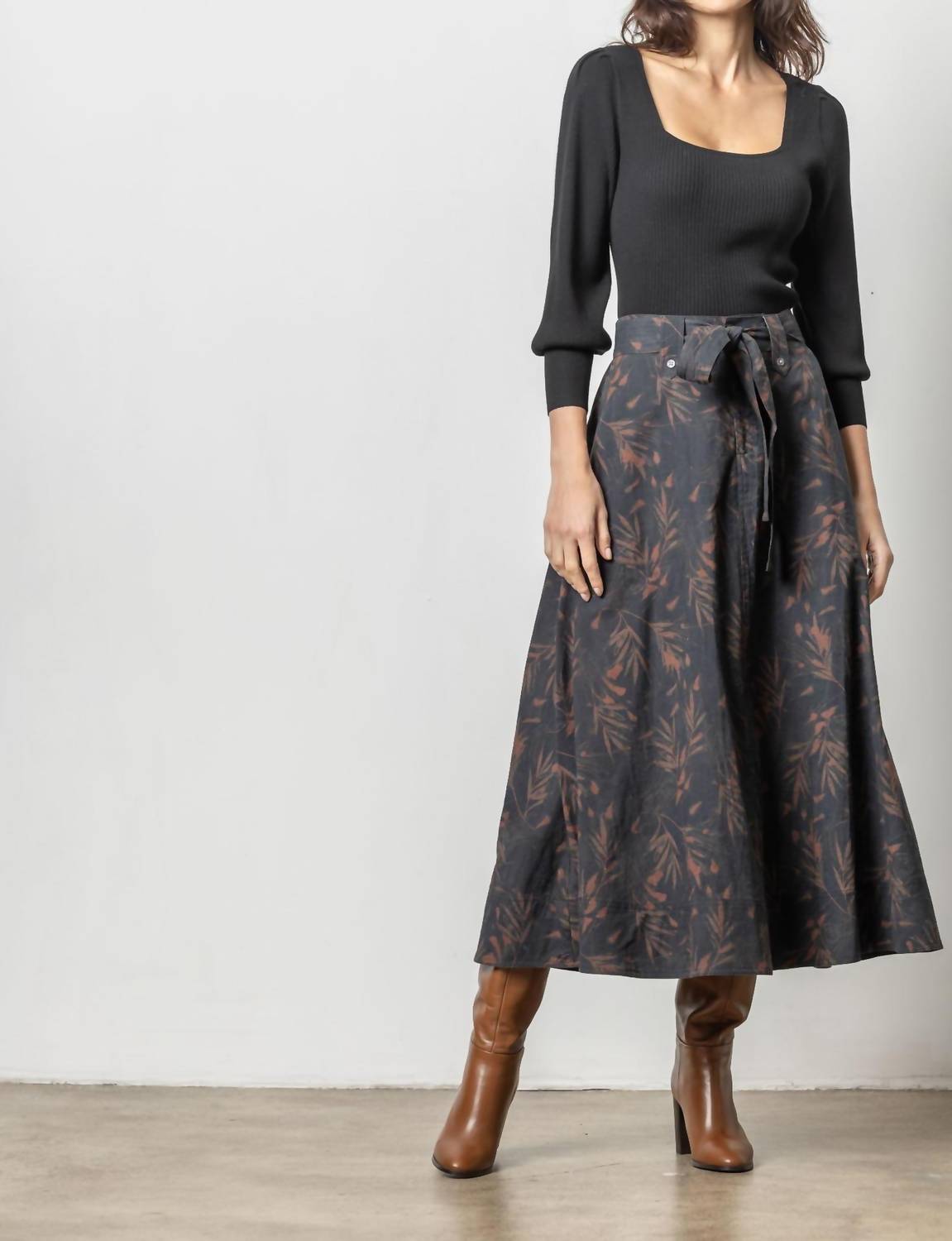 Elevate your wardrobe with the Long Belted Skirt by Lilla P, crafted from 100% cotton in a graphic multi-color design. This 36" long A-line piece features a removable belt and side pockets, offering both style and functionality. It sports a plain front with an elastic back waist for a flattering fit, and closes with an easy pull-on style. Care is simple with machine wash cold instructions, making it a must-have for effortless chic.