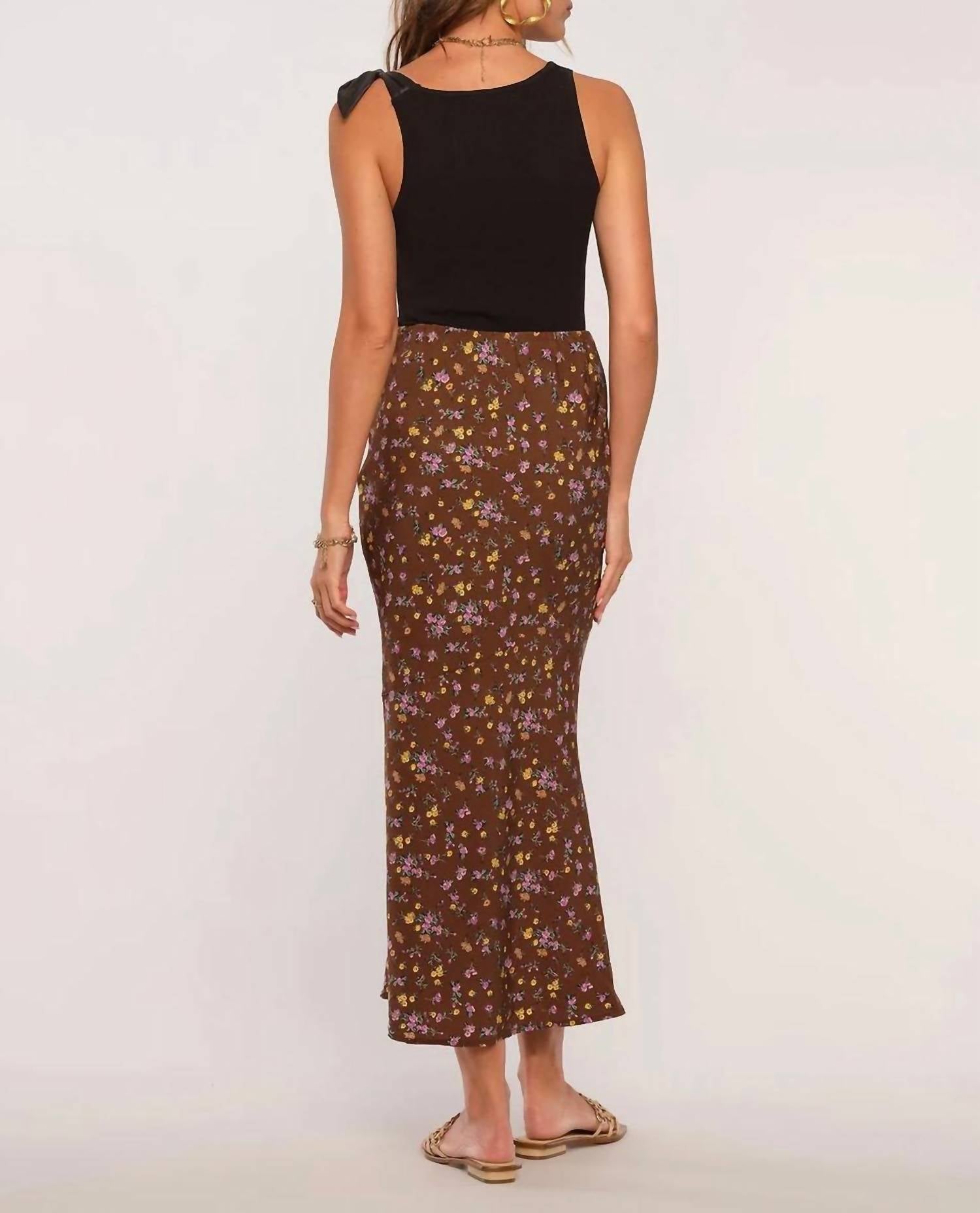 Introducing the Fiona Midi Skirt by Heartloom, a captivating floral piece in a rich Espresso hue that's designed to turn heads at any occasion. With an ankle-length crepe de chine construction, this slim-fit skirt ensures both style and comfort. Made from 100% Polyester, it features a hidden elastic waist for a seamless fit and has a pull-on closure. Care: Machine wash. Measurements from size S include a 37.5" inseam. Style number: 241ra5q.