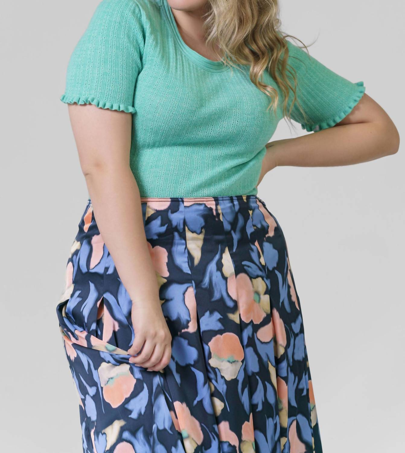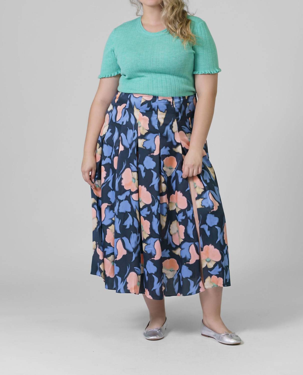 Discover the Allura Midi Skirt by Tanya Taylor, a chic addition to your wardrobe in a vibrant Watercolor Geranium floral print. Crafted with care for plus-size figures, this navy A-line skirt features a flattering side zipper and a stylish front slit. Made from quality polyester, it offers a graceful, figure-grazing fit ideal for summer evenings or Easter events. Care for this elegant piece by hand washing and line drying to maintain its vivid print. 92% Polyester, 8% Spandex