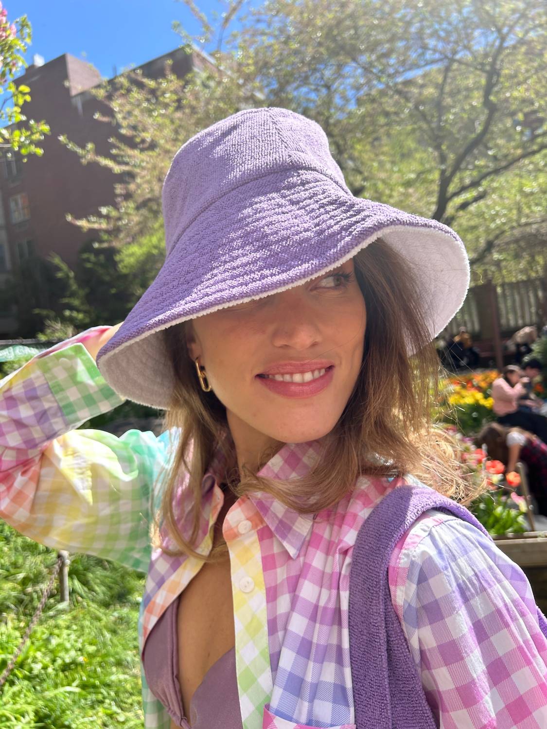 Elevate your sunny days with the Women's Maui French Terry Reversible Hat by Jocelyn, perfect for stylish sun protection. Crafted from 80% Polyester and 20% Nylon, this lavender bucket hat boasts a versatile reversible design with a tonal embroidered star detail on the front.