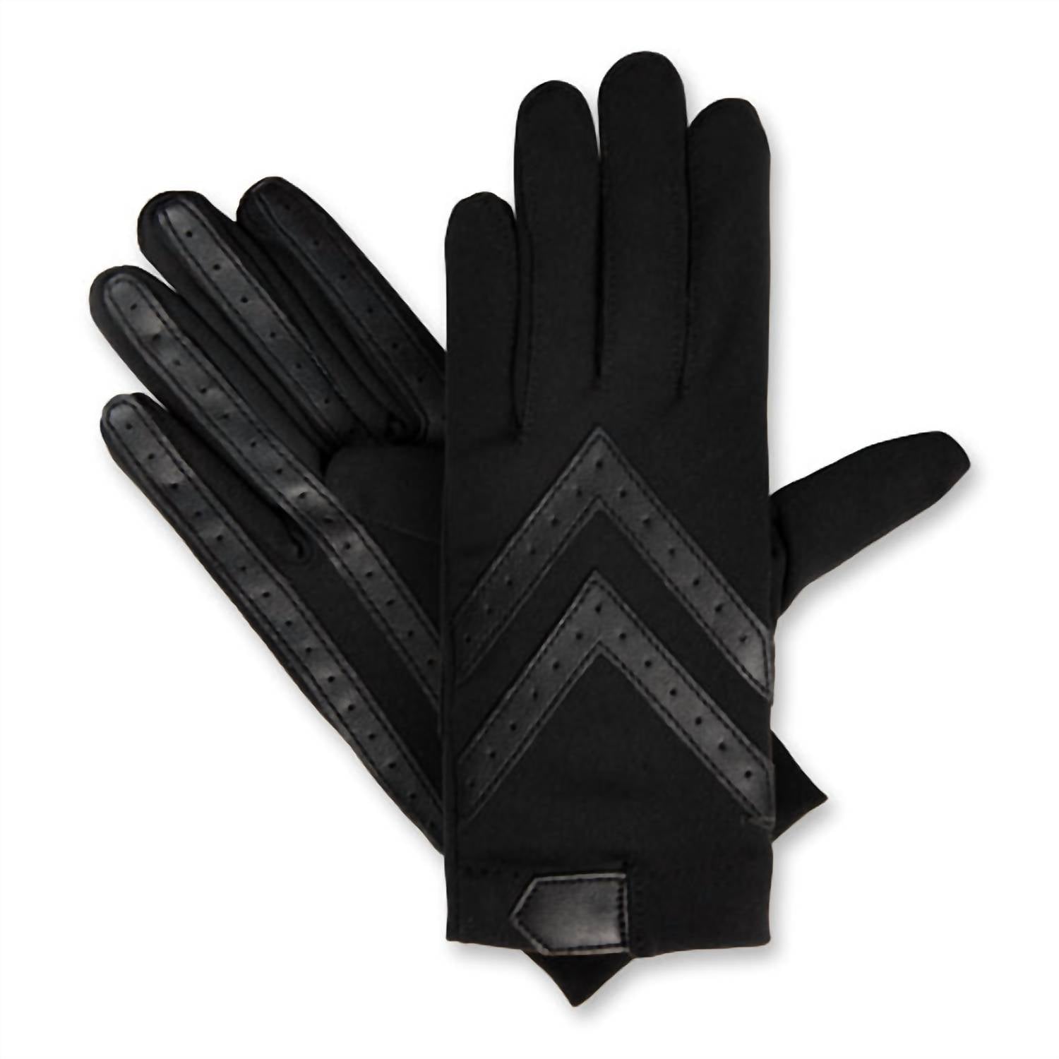 Add a playful touch to your winter wardrobe with these cute and stylish gloves. Expertly designed to keep your hands warm and toasty, these are the perfect winter accessory for those cooler temps. Introducing the Women's Spandex Shortie Glove With Chevron Detail by Isotoner, crafted to offer both style and functionality. These wrist-length gloves in classic black feature a 4-way stretch spandex fabric, ensuring a contoured, customized fit for superior flexibility and dexterity. Enhanced with smartDri® technology, they repel water, while smarTouch® fingertips provide excellent touchscreen capability. The design includes a palm patch for a secure grip, and these lightweight, unlined gloves are machine washable for convenient care.