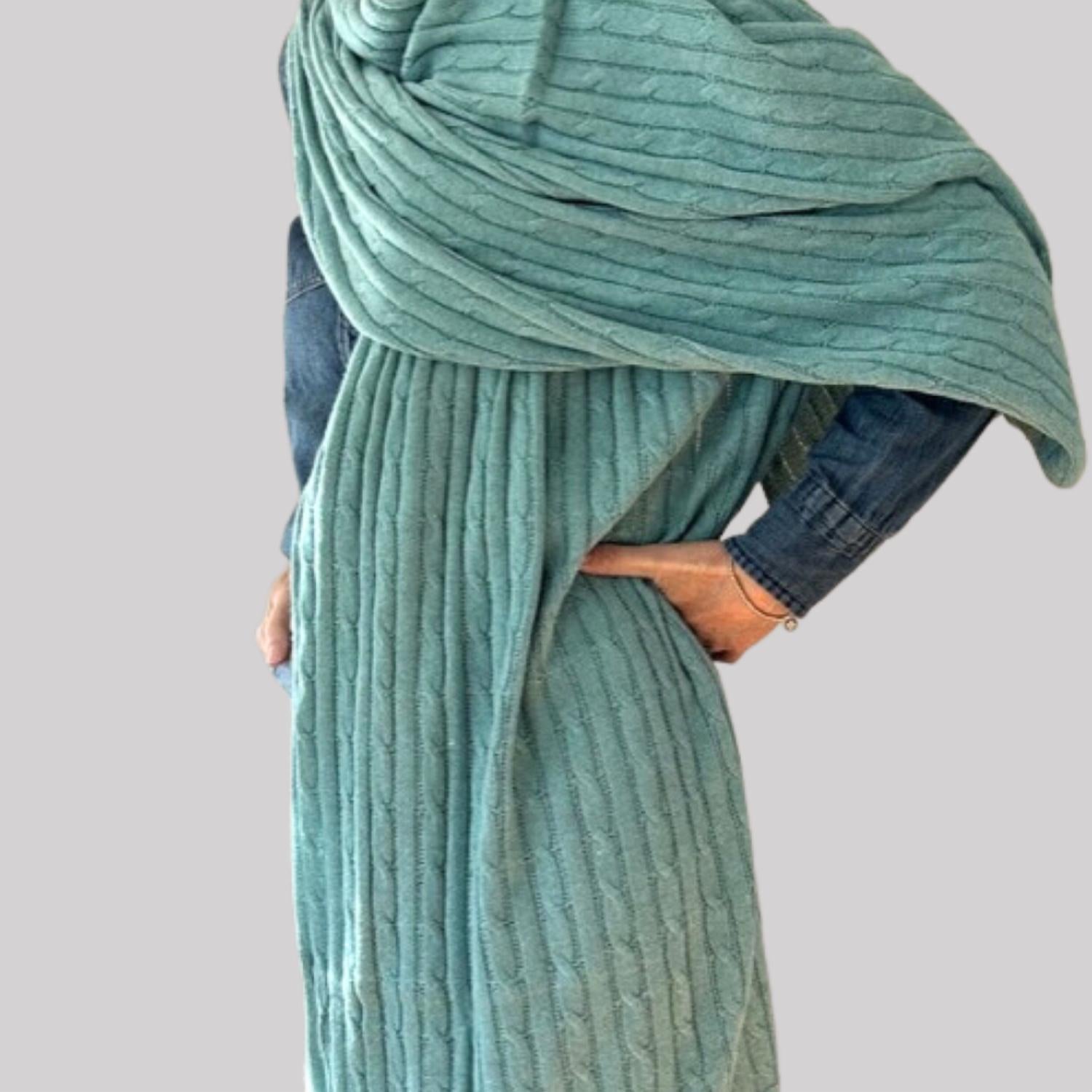 Both classic and versatile with the endless ways you can wear it. Cotton 95%, Cashmere 5%. 81'x36'. Machine Washable.
