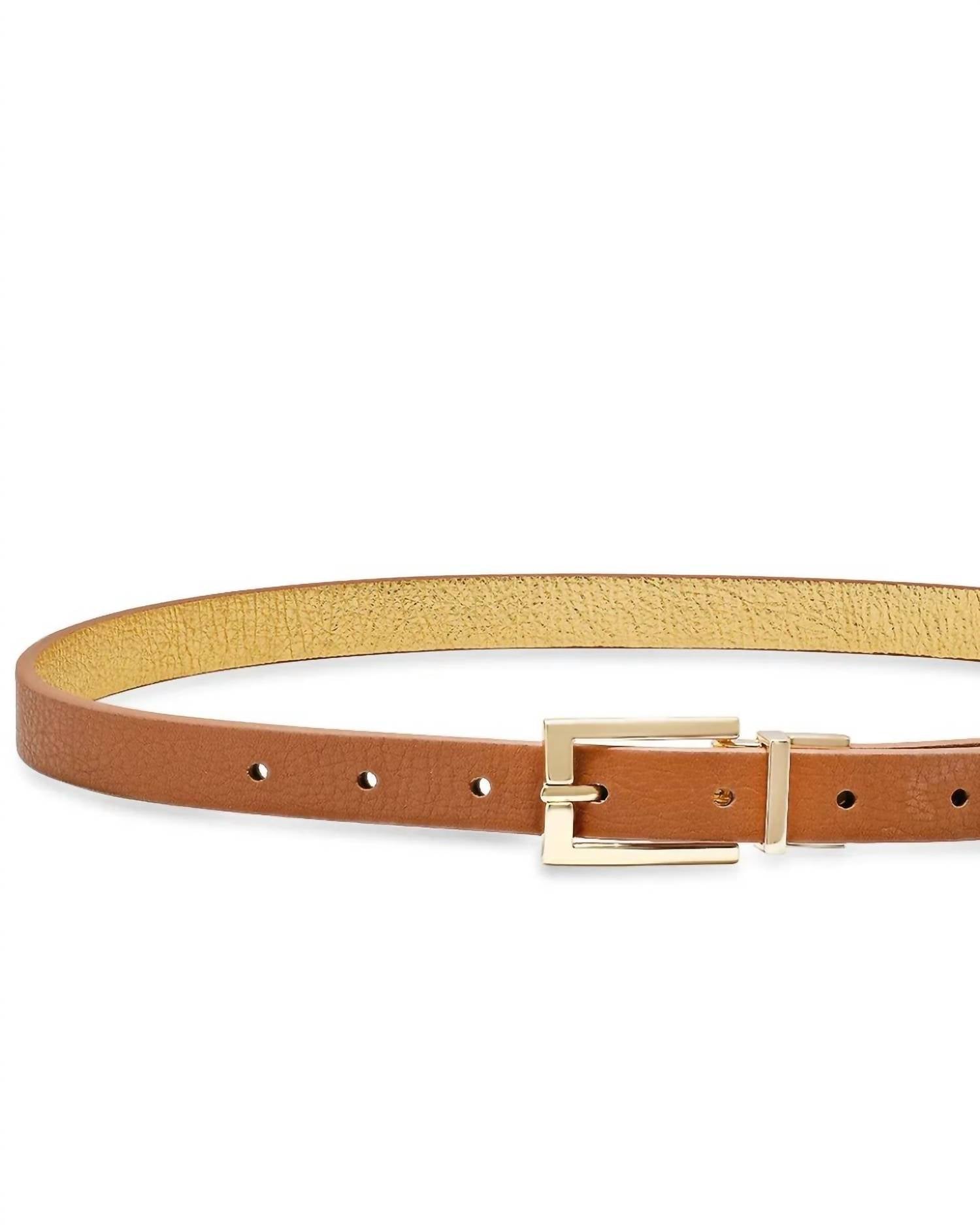 The Women's Pasadena Reversible Belt by Laurel and Gold is an essential accessory crafted from genuine leather for a durable and elegant finish. This versatile belt features a shiny buckle that easily pulls and twists to allow wearing on both sides, offering you two belts in one. At a sleek .75" width, it complements jeans effortlessly. With 7 holes available, you can adjust the size to fit perfectly.