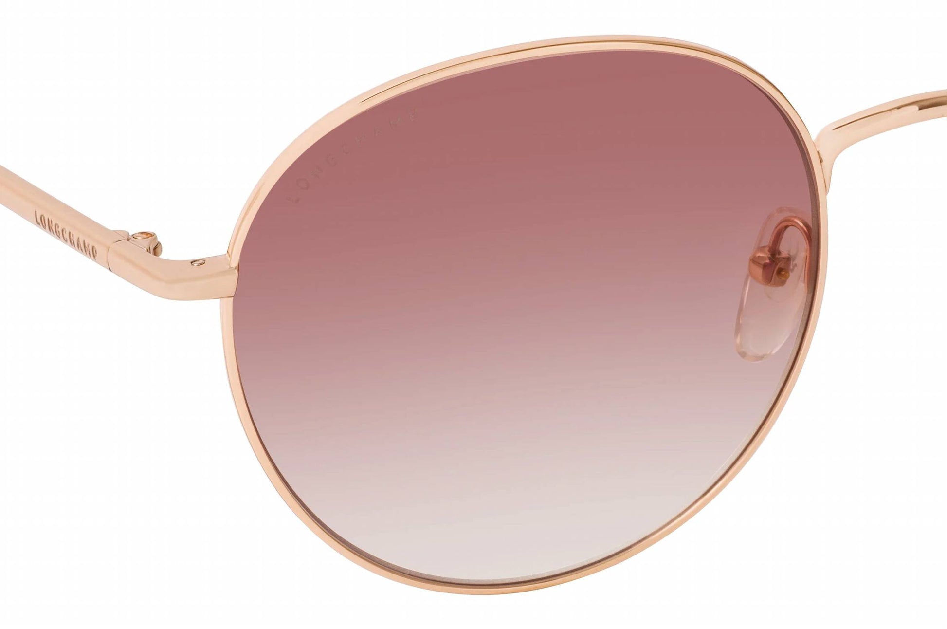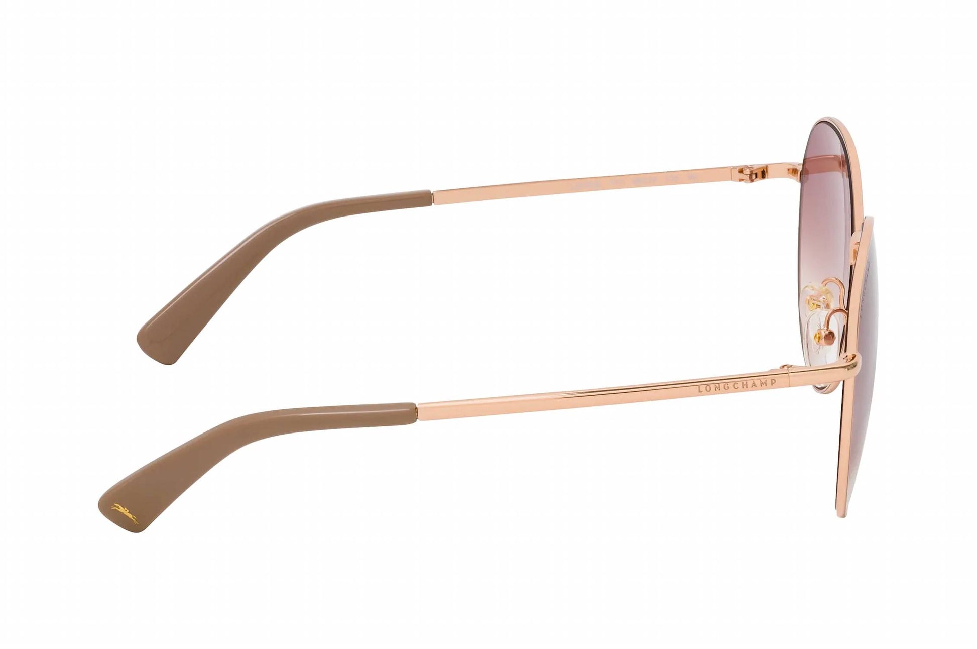 Blending fashion and practicality, these stylish shades are chic and mandatory. Stand out from the crowd and safeguard your vision with these stand-out sunglasses. Elevate your style with the Women's Lo101s 771 Sunglasses by LONGCHAMP, a chic aviator design in an elegant rose gold hue. Crafted from durable metal, these sunglasses feature brown lenses offering 100% UV protection. The non-polarized lenses measure 56 mm in width, complemented by a 17 mm bridge and 140 mm temple length for a comfortable fit. Perfect for adding a touch of luxury to your look, these glasses embody timeless sophistication.