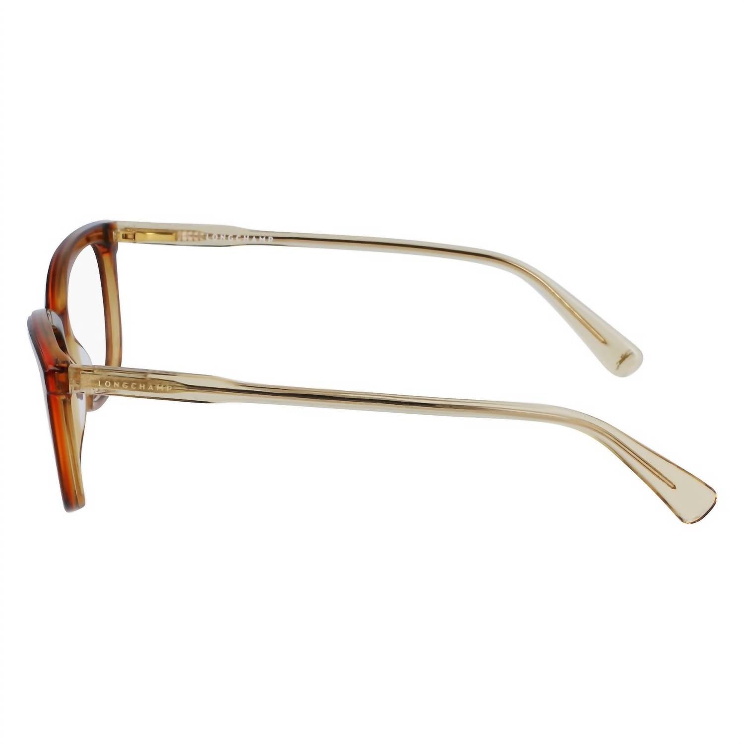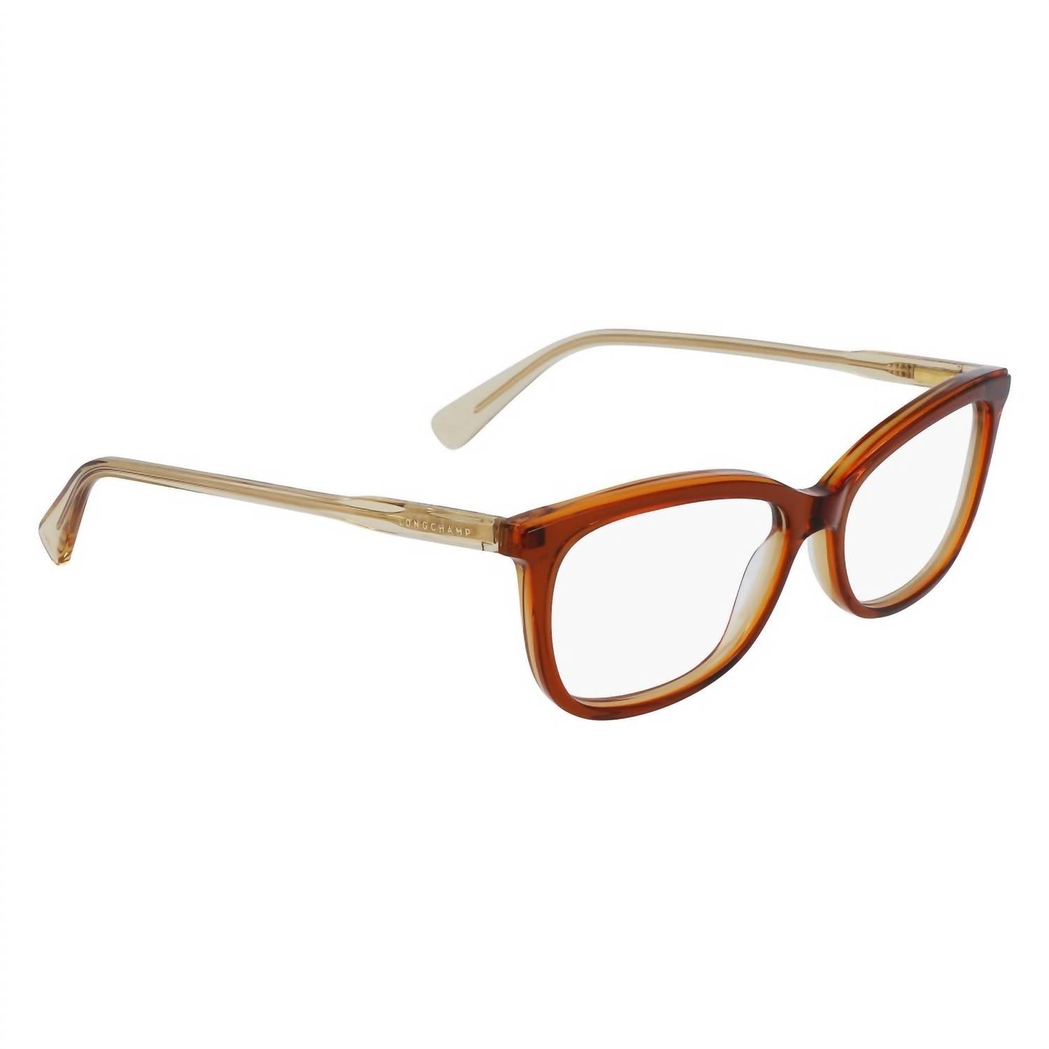 Blending fashion and practicality, these stylish shades are chic and mandatory. Stand out from the crowd and safeguard your vision with these stand-out sunglasses. Introducing the LONGCHAMP Women's Lo2718 233 Eyeglasses, a chic and modern accessory for any wardrobe. Crafted with a durable plastic frame and transparent plastic lenses, these eyeglasses shine in a stylish caramel hue. Designed in a rectangular shape, they feature a lens base 4 for a comfortable fit. Dimensions are lens 54mm, bridge 15mm, and temple 140mm, making these eyeglasses both practical and fashionable.