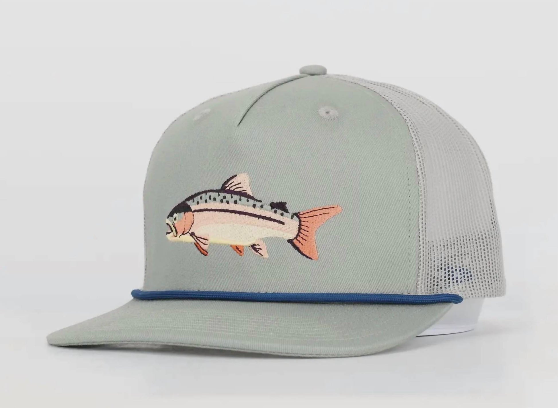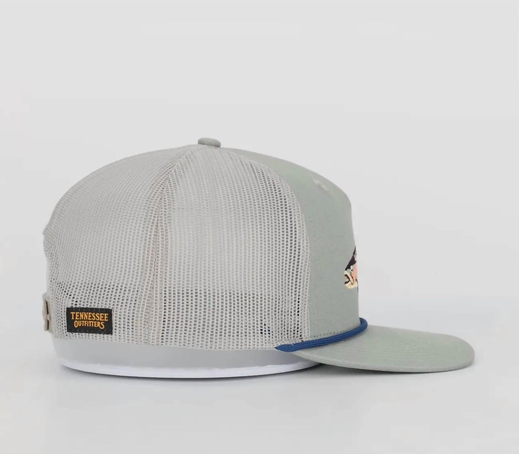 Block the sun in style with this adorable hat that will complement any outfit. Expertly crafted to elevate your style while providing a delightful touch of personality. Discover the Trout Hat by Tennessee Outfitters, a stylish grey accessory perfect for outdoor enthusiasts. This Tucker hat boasts a pliable bill and double cloth construction, offering durability and comfort. The embroidered detailing add a rustic charm.