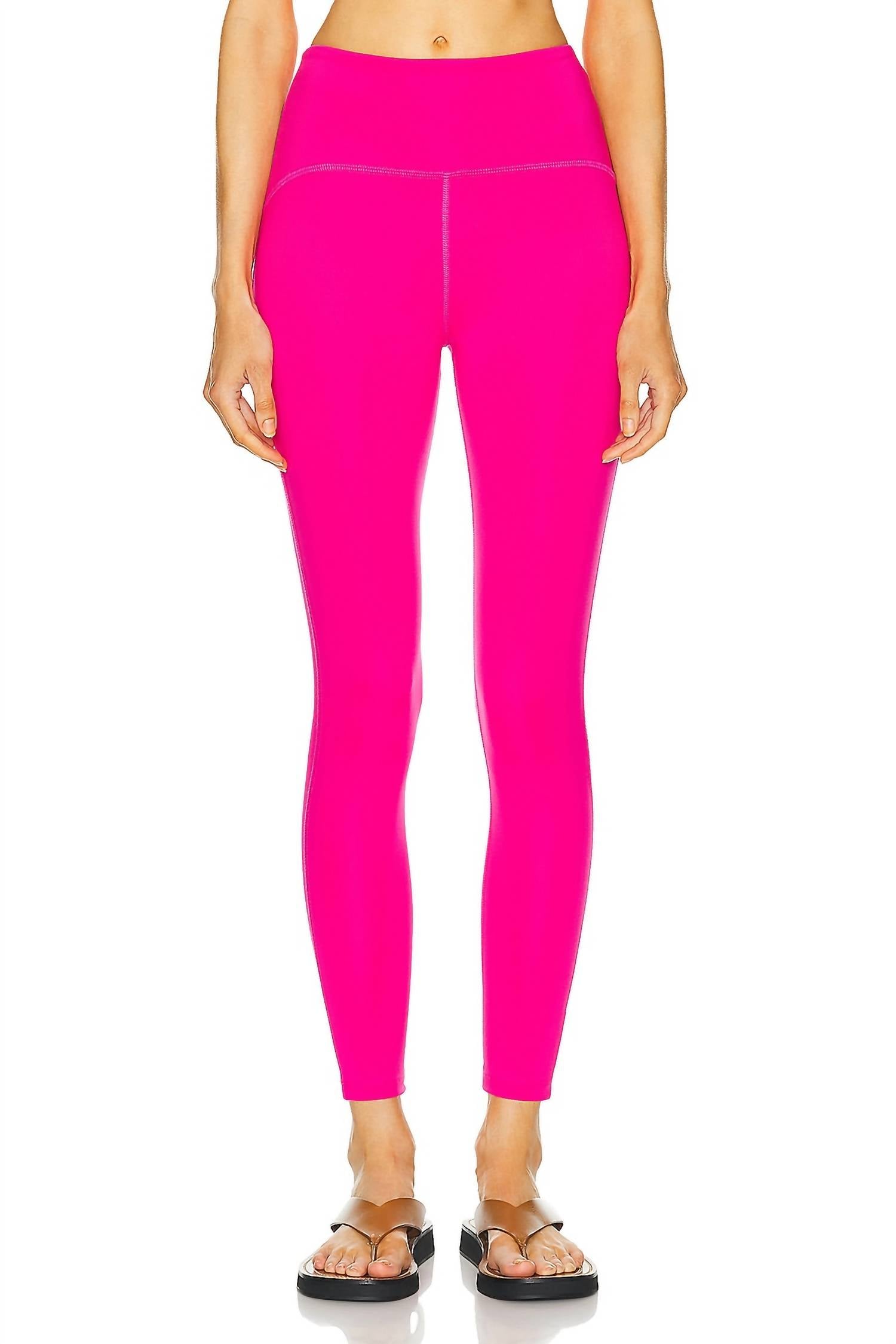 Introducing the Powerbeyond Strive High Waist Midi Legging by Beyond Yoga, designed to elevate your activewear collection with style and performance. Made from 95% polyester, 5% elastane, these solid leggings feature a high-rise waist and a skinny leg style for a sleek and flattering silhouette. Crafted in the USA, they offer a pull-on closure for effortless wear and a slim fit that moves with you. Easy to care for, simply machine wash and lay flat to dry.
