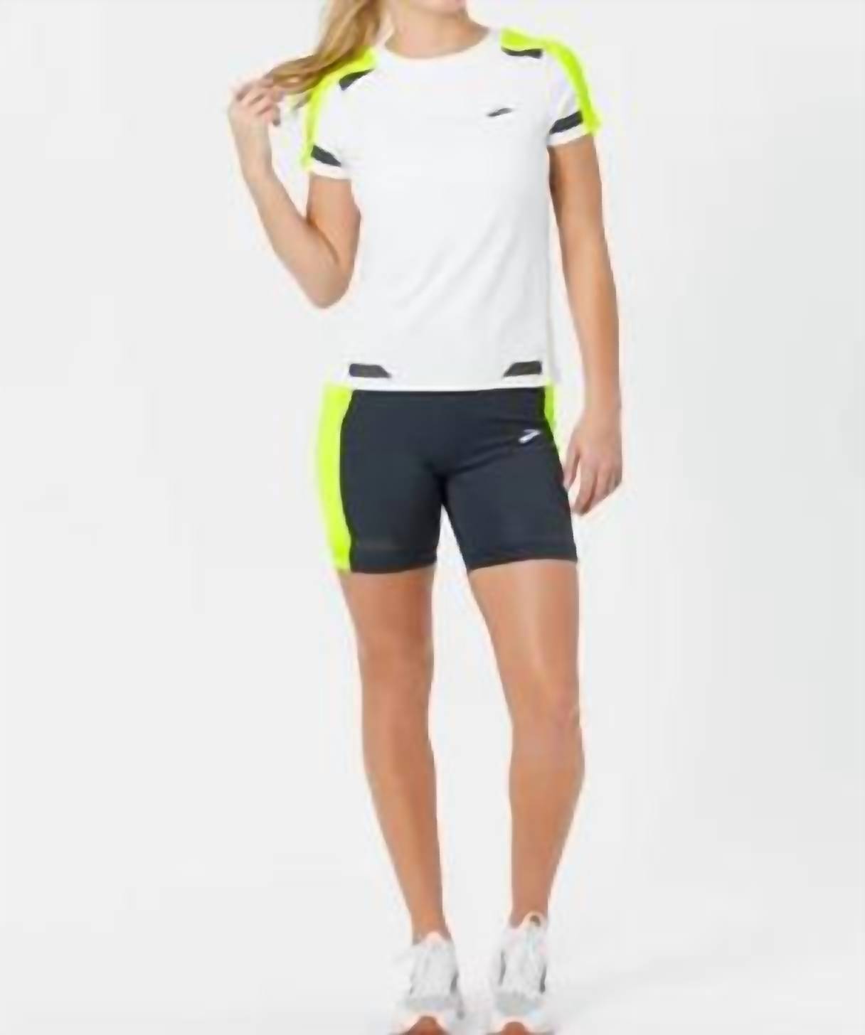 light weight and beyond comfortable, these athletic shorts are perfect for those warm weather days. Introducing the Women's Run Visible Short Tights by BROOKS, designed for performance and style during your nighttime runs. These shorts boast a 6-inch inseam and are crafted from 100% polyester with a stretchy material for ease of movement. Featuring a pull-on closure with a wide drawstring waistband, these shorts provide a secure fit while 3M Scotchlite reflective elements enhance visibility in low light. Practical side pockets accommodate your essentials, and you can maintain them with machine wash and tumble dry care instructions.