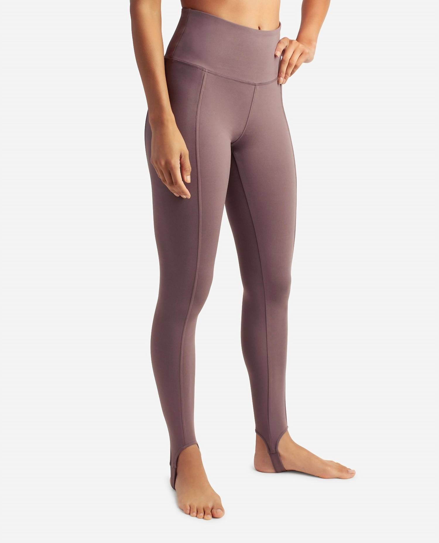 Introducing the Truffle Stirrup Leggings, perfect for adding a touch of elegance to your activewear collection. Designed with a high-rise, no-slip waistband to ensure a secure fit, these leggings feature a fashionable stirrup detail and a 26" inseam. The composition of 83% Polyester and 17% Spandex ensures flexibility and durability, offering a comfortable fit with a skinny leg style. With a solid pattern and a convenient pull-on closure, these leggings are an ideal choice for both casual and active pursuits.