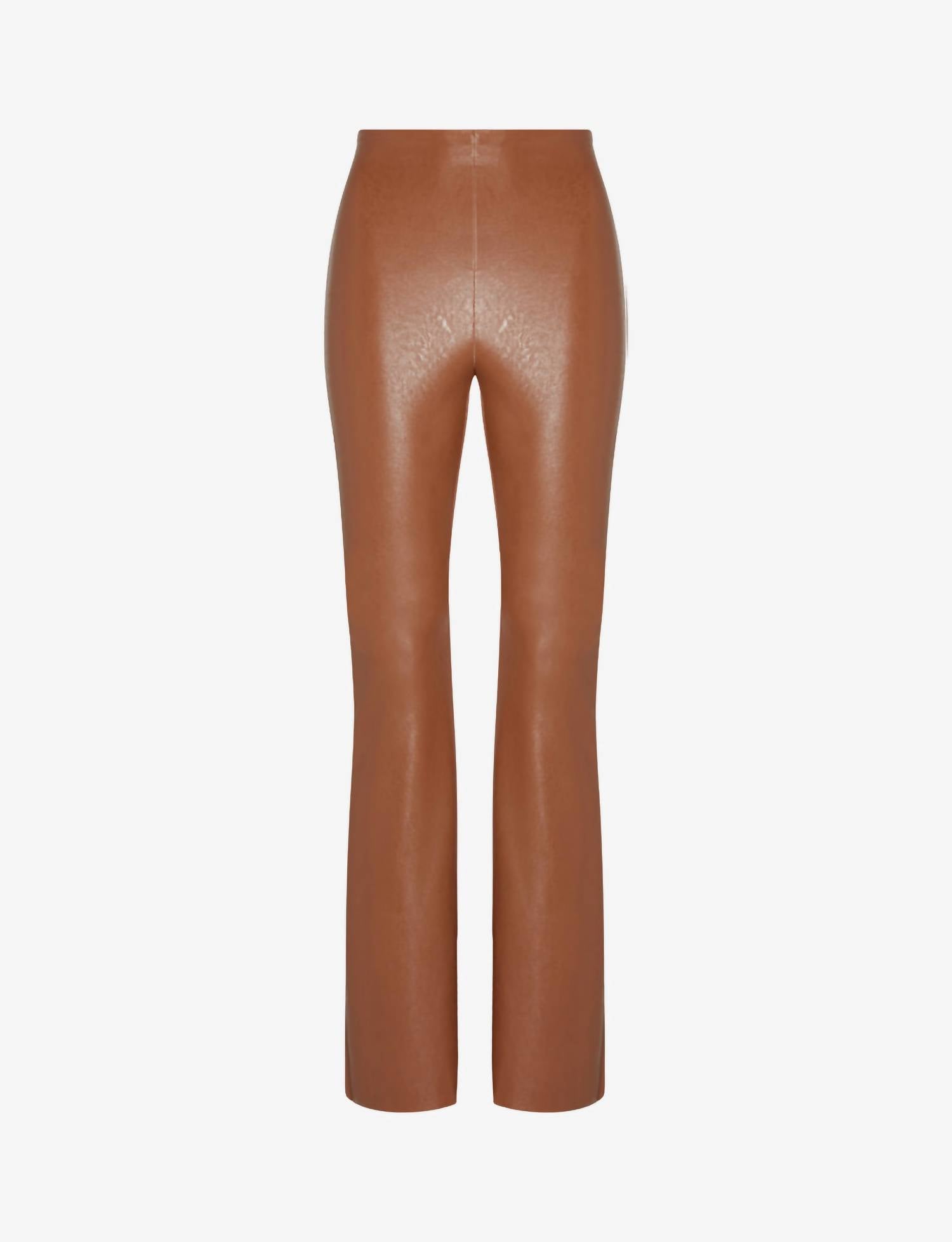 Four-way stretch faux leather leg (55% polyurethane, 44% viscose, 1% elastane), wasitband (72% nylon, 28% elastane). Front rise: 11 3/8"; inseam: 34" for size medium. Fit-tested on real women. Four-way stretch and high recovery. Real leather look and feel. Firming fabric with light compression. Signature internal smoothing waistband.