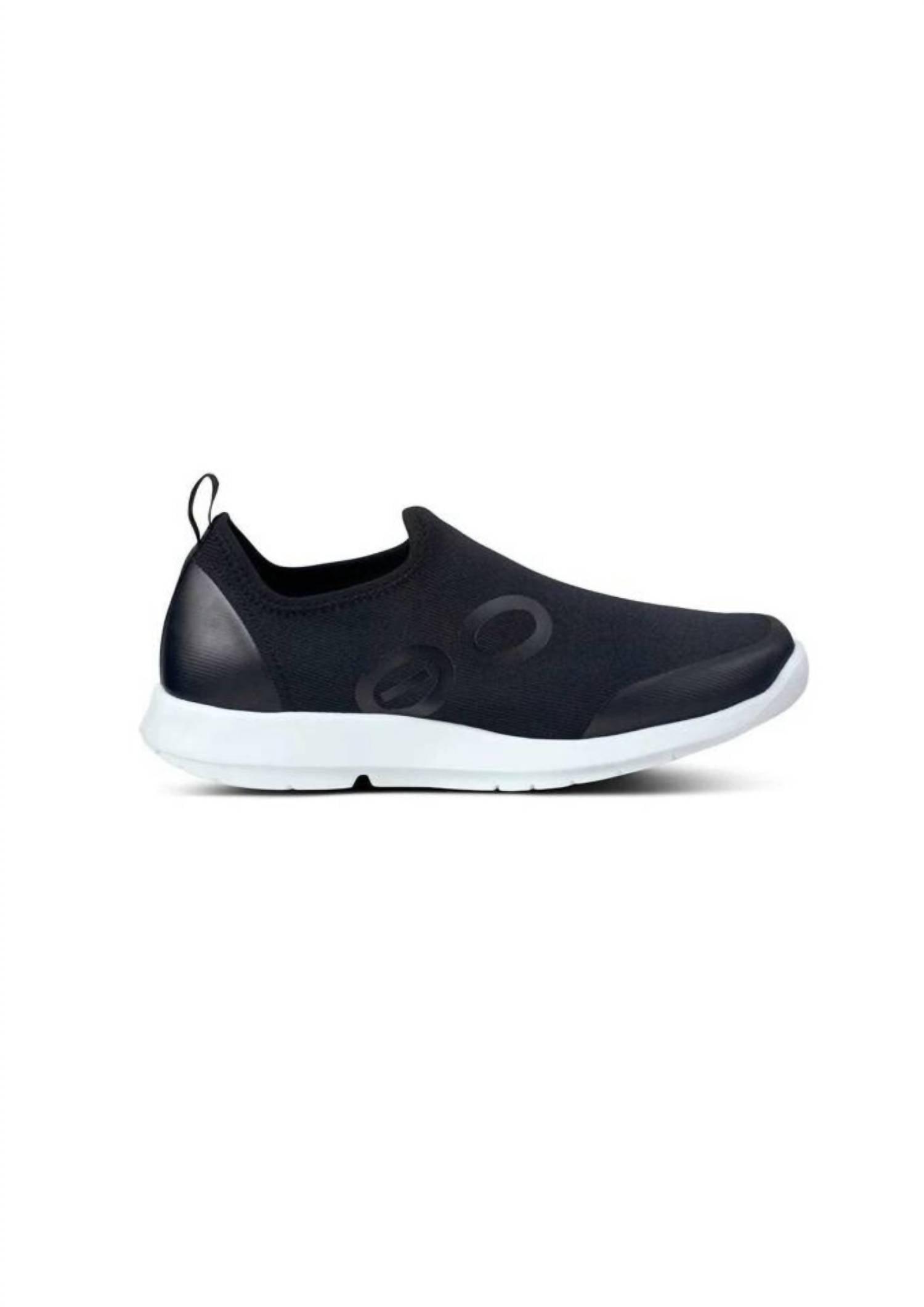 When fashion meets function. Step into recovery and style with the Women's Sport Low Shoe by OOFOS, featuring a sleek White Black design. Crafted for post-game comfort, these athletic shoes are made with a premium Rubber material. The OOfoam™ midsole and patented footbed geometry offer unmatched cushioning, while the 4-way stretch FibreFlex upper ensures maximum mobility. Designed for fitness and athleisure, this lightweight and flexible shoe comes with a Wedge Heel and a round toe shape for a secure and comfortable fit. Ideal for spring workouts, the heel height measures a low 1 1/4 to 2 inches, perfectly blending function with fashion.