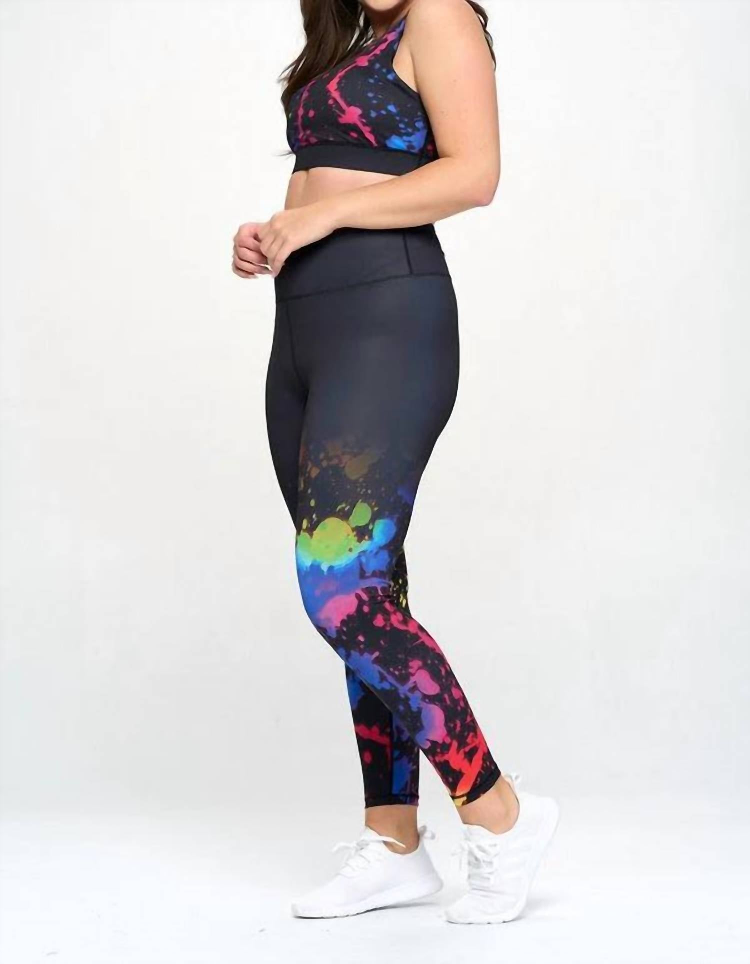 A sports bra that has it all - style, function and support. Designed to amplify your workout with vibrant neon colors. Scoop neckline sports bra features tank top straps, a scoop back, and a reinforced elastic band, offering support with two removable pads. High-rise leggings include a hidden pocket in the waistband, moisture-wicking fabric, and a triangle cotton gusset, providing a squat-proof fit with 4-way stretch. Composed of 46% Polyester, 41% Nylon, 13% Spandex. Ensuring comfort and style perfect for summery athleisure activities. Hand wash.