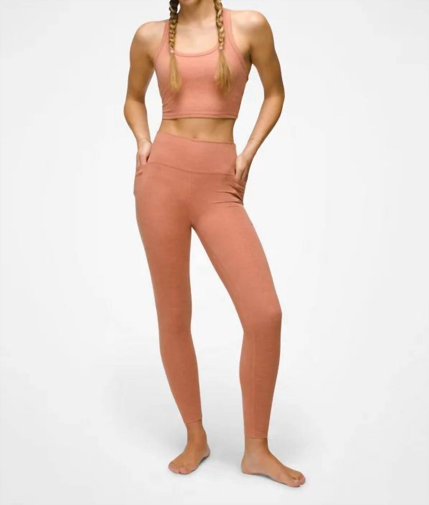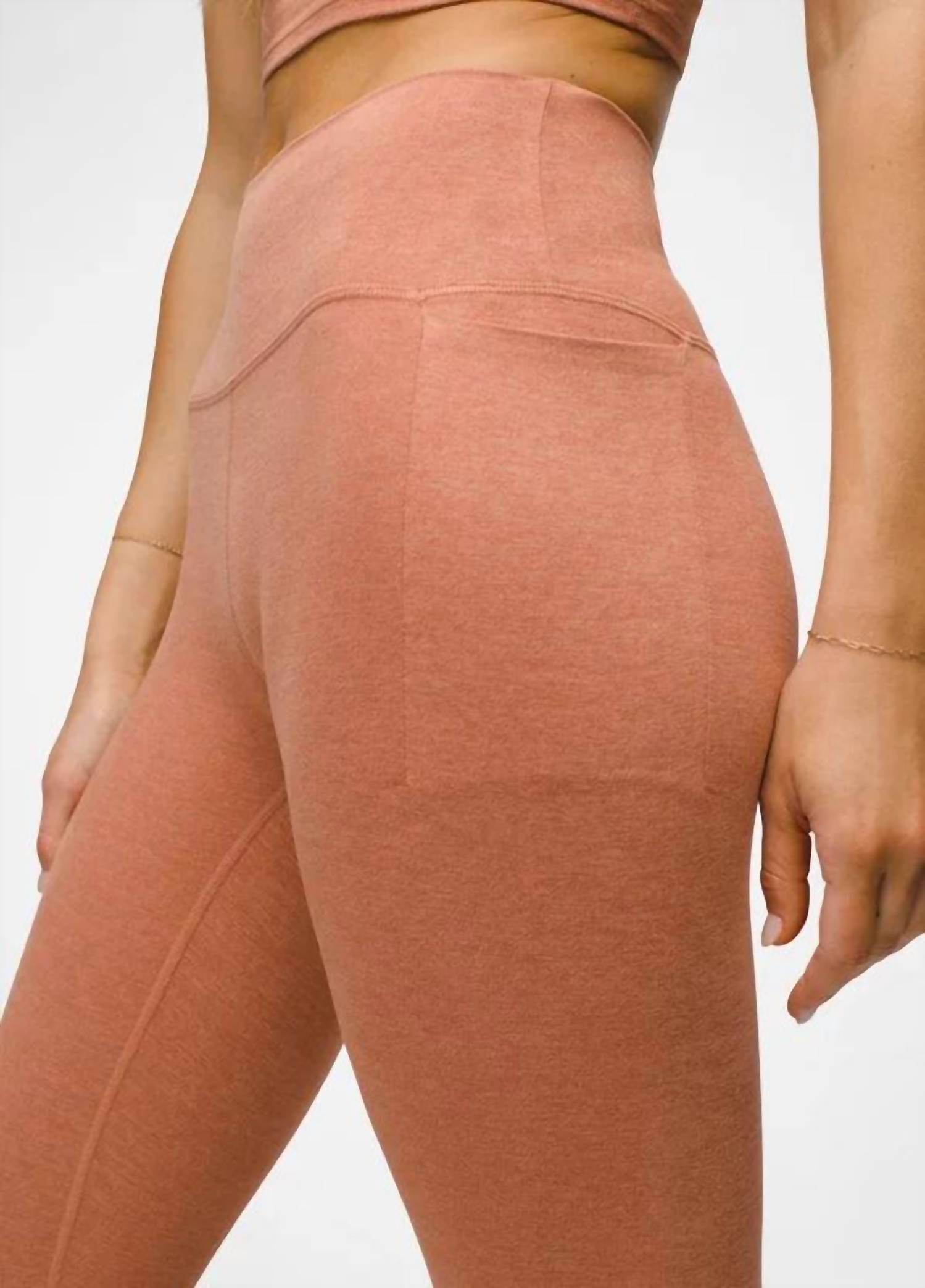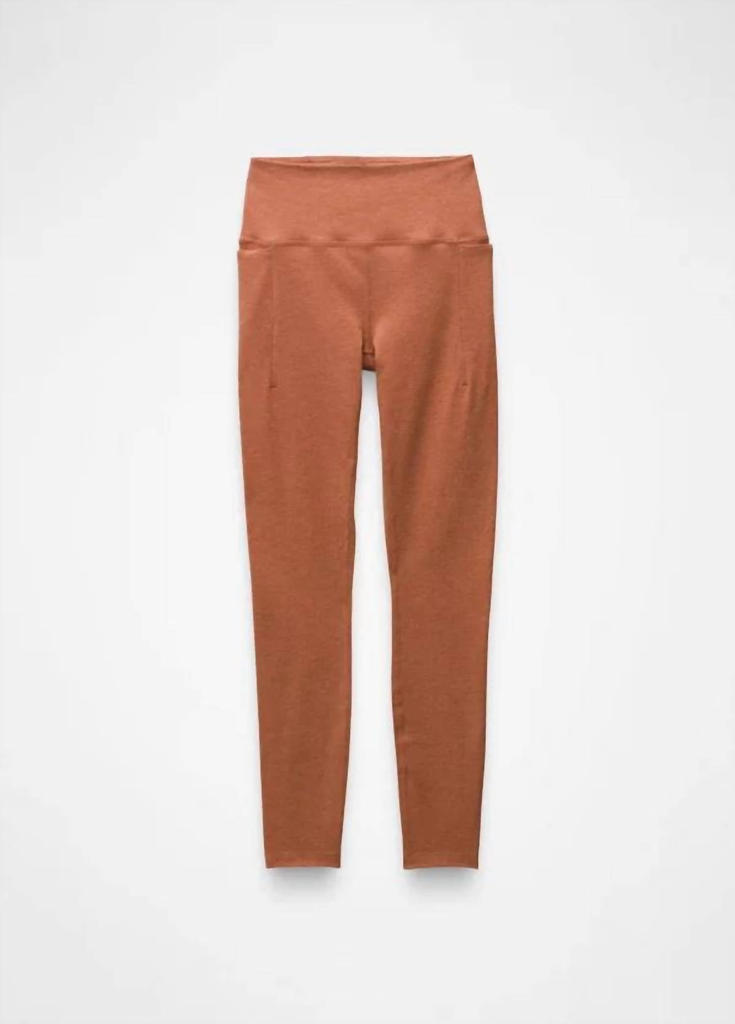 You'll be reaching for this best-selling legging all season long. Stay active and comfortable in the prAna Women's Heavana Pocket Leggings, crafted from a super-soft terracotta heather fabric. Featuring a pull-on closure and a wide waistband with side and hidden back pockets, these leggings ensure practicality meets style. Made with 87% recycled polyester and 13% elastane, they offer UPF 50+ protection and are perfect for low impact activities like yoga. Designed in a full-length style, these imported leggings require machine washing for easy care.