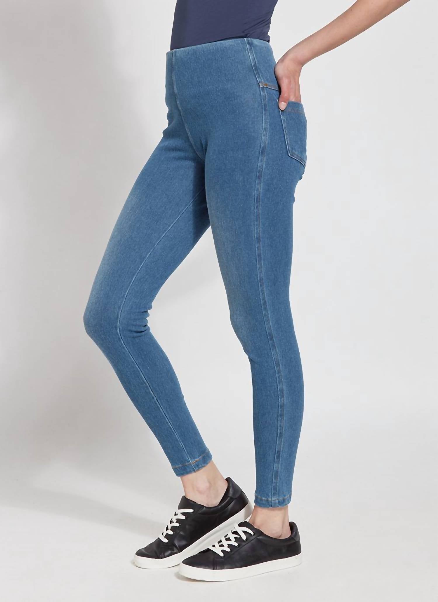 You'll be reaching for this best-selling legging all season long. Discover the Lysse Toothpick Denim Leggings, a quintessential addition to any wardrobe in a chic Indigo hue. These women's leggings feature a high-rise waistband with a pull-on closure and strategically placed back pockets for added function and style. The body-hugging slim fit and skinny leg design are made from a comfortable cotton blend with 4x stretch denim knit, boasting 95% cotton and 5% spandex. With a 27.5” inseam, they are designed for active wear and are easy to maintain, being machine washable and tumble dry friendly, making them perfect for spring vacations.