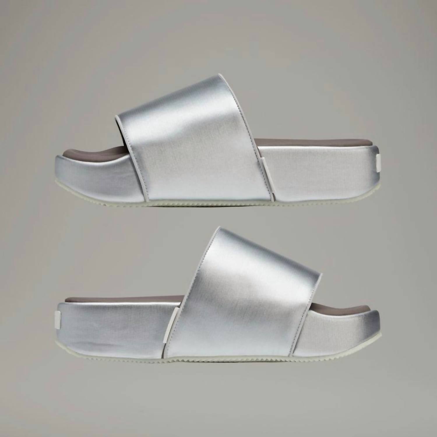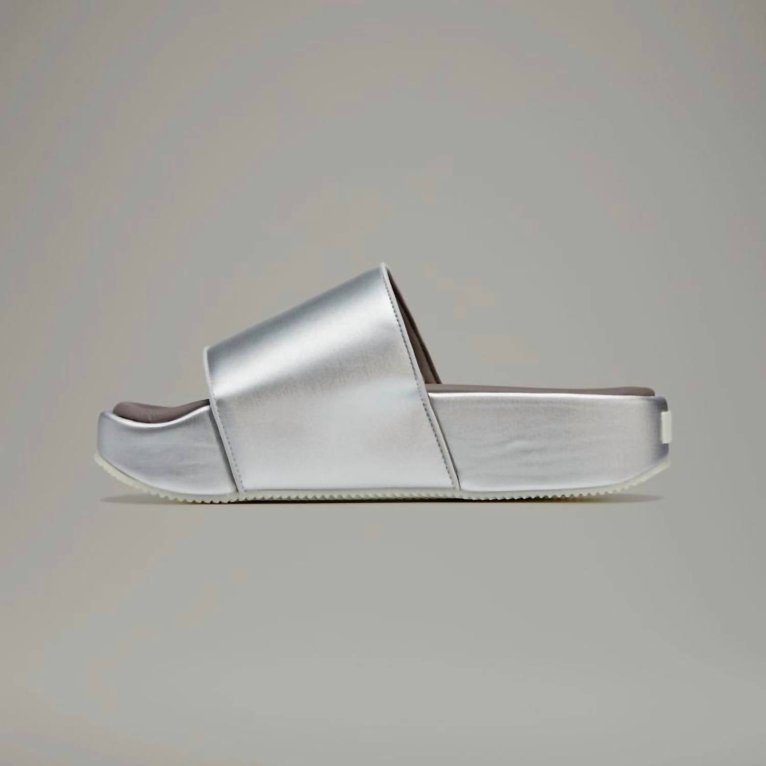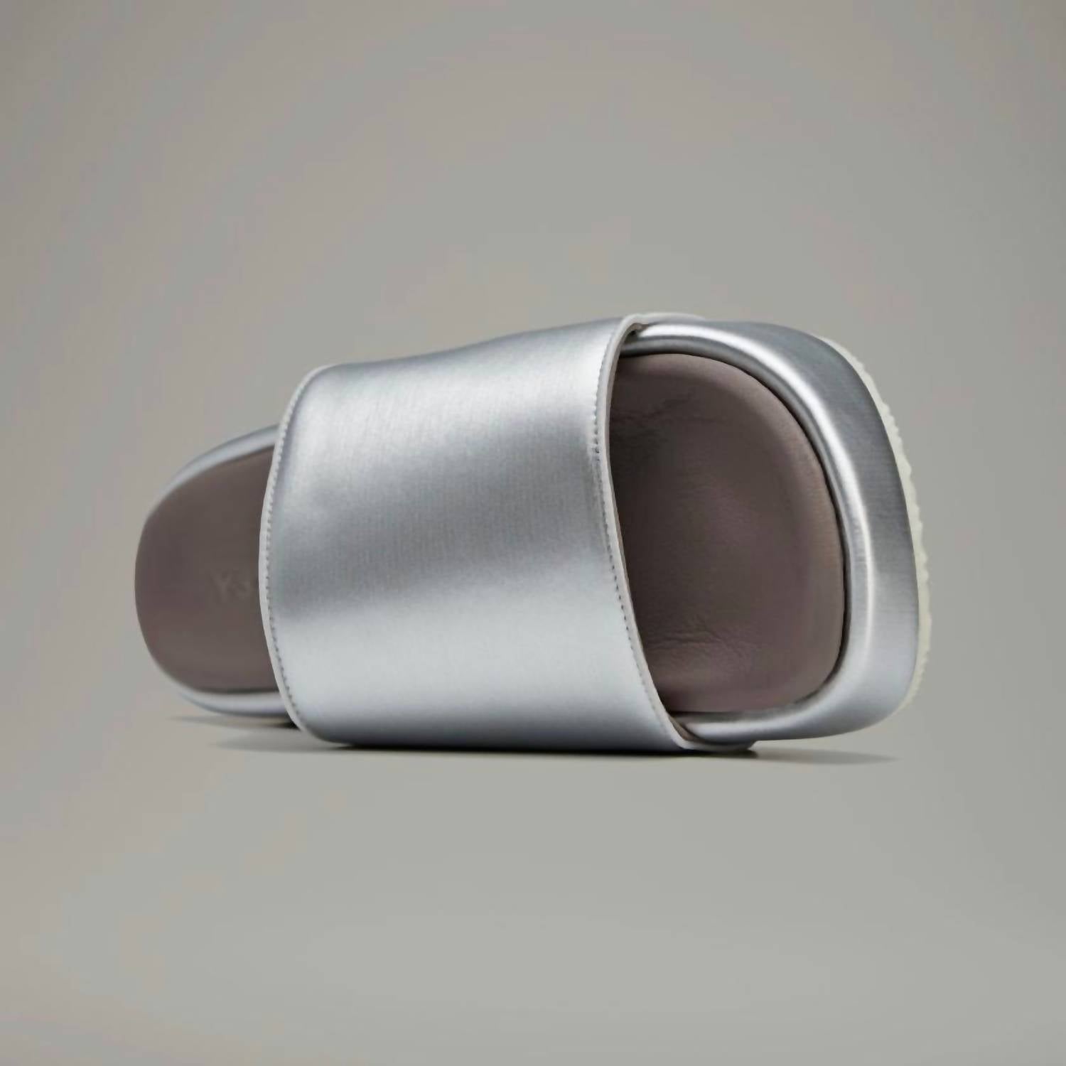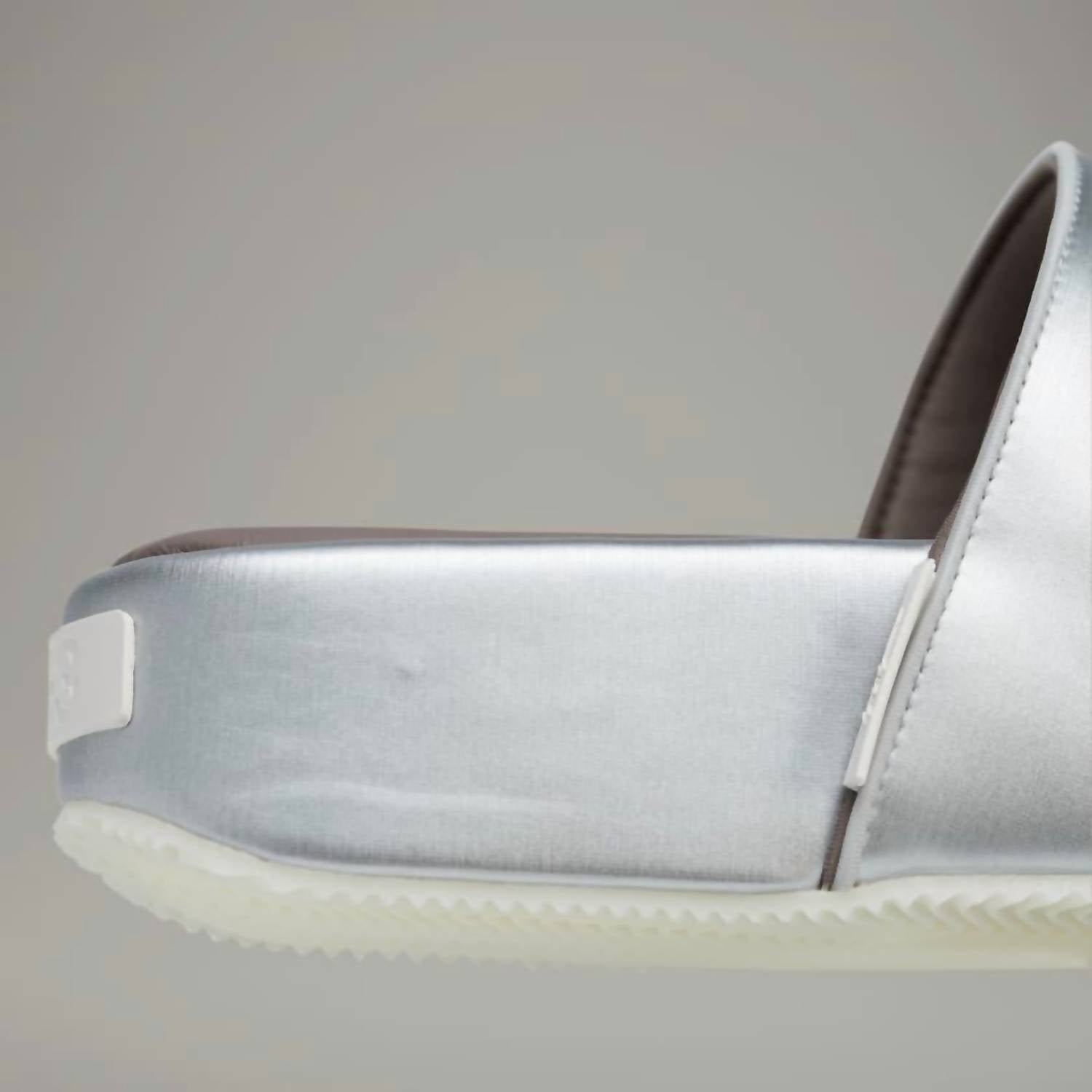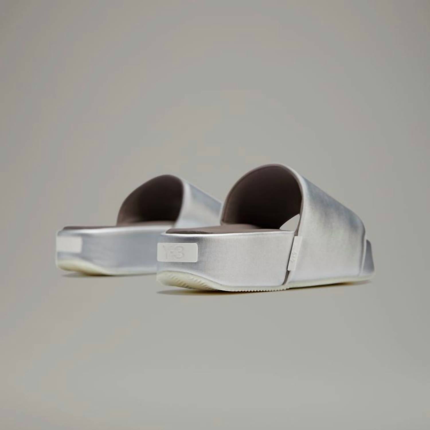 Step into bold style with the Unisex Y-3 Slides by adidas, featuring a dramatic silhouette that merges sport and fashion. The slip-on design is crafted from a polyurethane-coated synthetic microfiber upper in a striking Silver Metallic Brown Cream White. Enhanced with PORON® cushioning, these slides promise exceptional comfort, while the mesh lining and rubber outsole add durability. Perfect for both relaxation and statement-making, these sandals are a chic contrast of modern and traditional elements.
