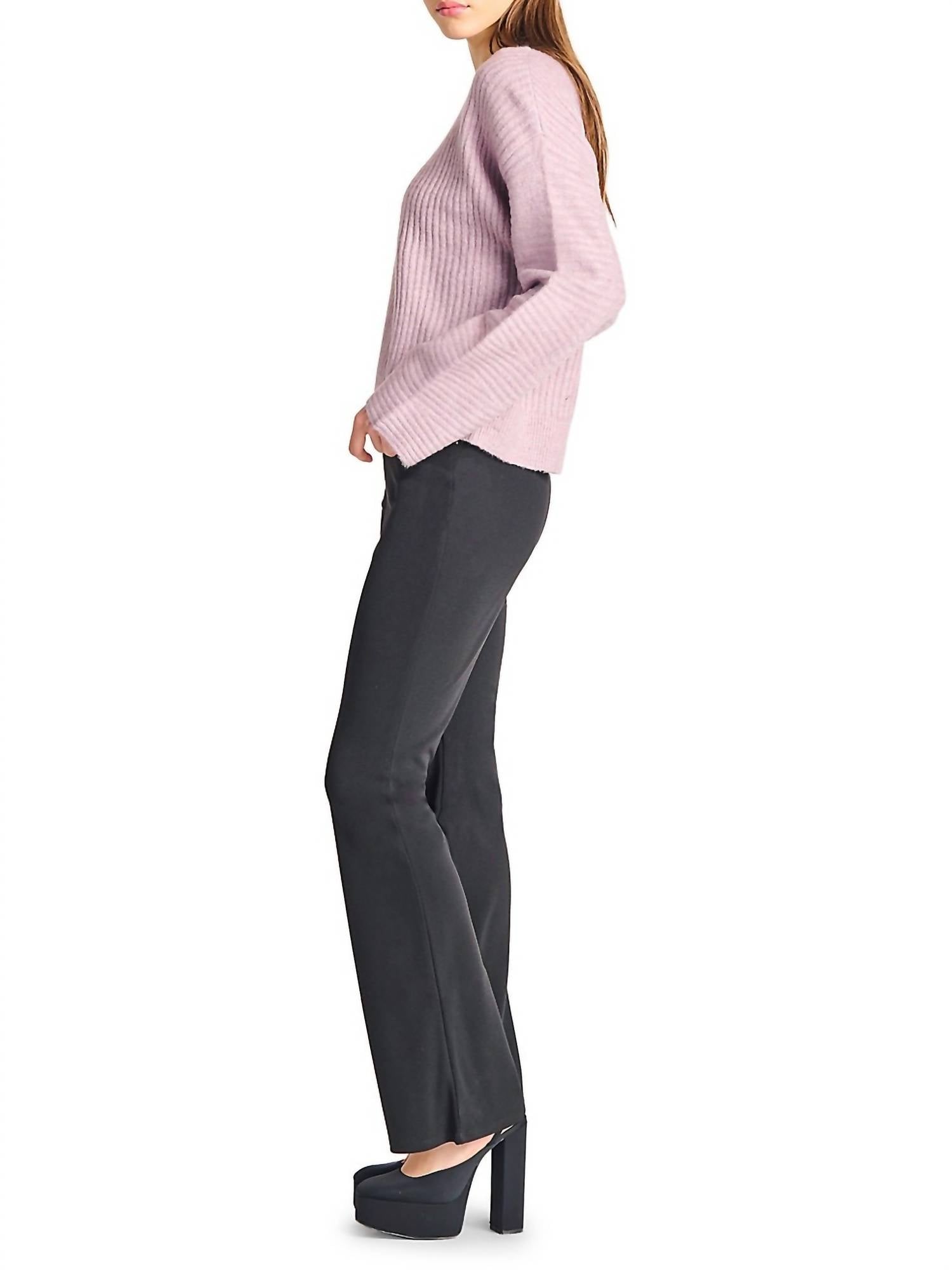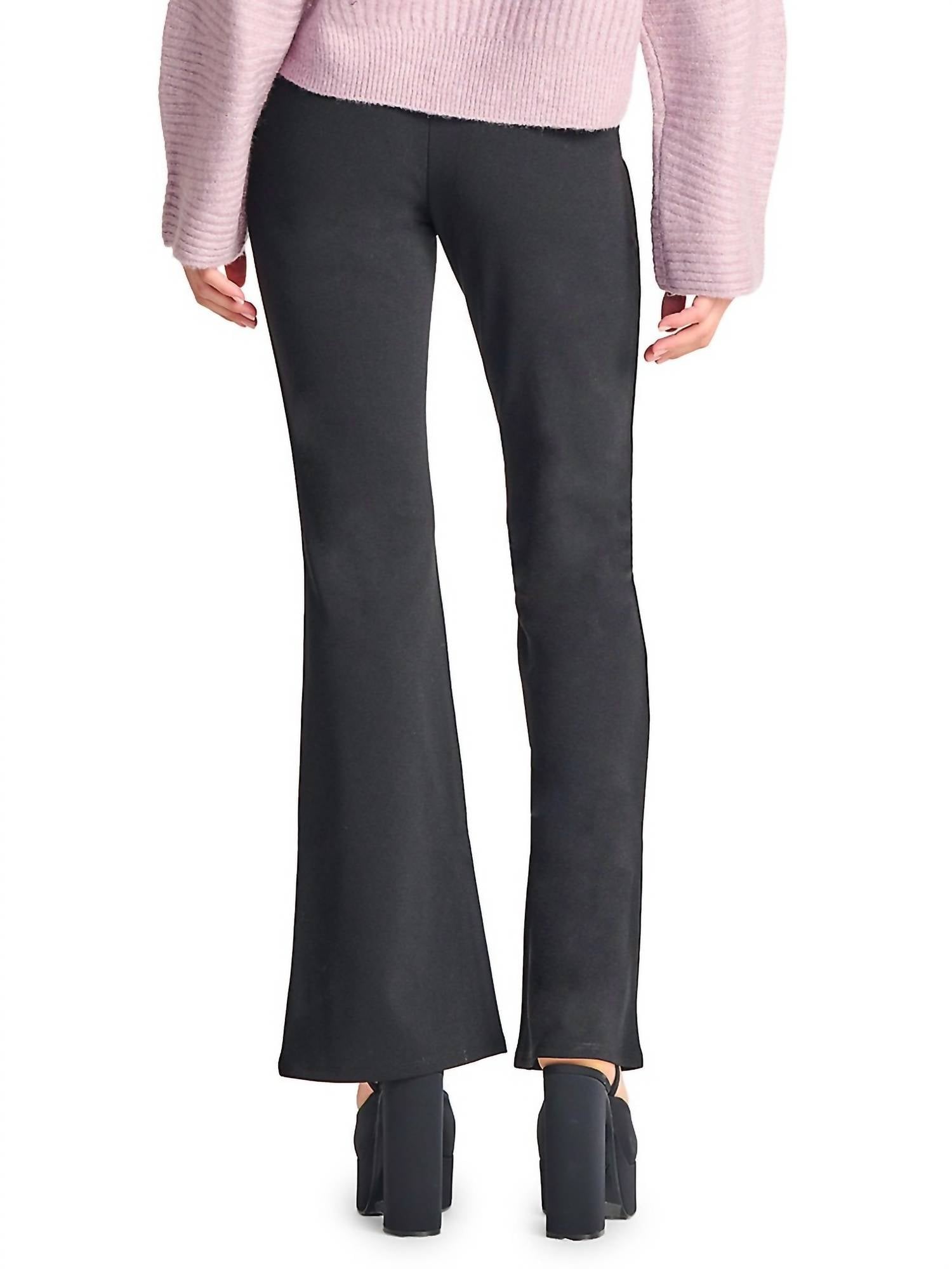 This Dex Flared Knit Legging boasts an elegant design with a stretchy knit construction that ensures comfort and movement. Flattering fit provides a slimming aesthetic while the darts at the knee and flare at the hem provide a feminine silhouette. 95%polyester / 5%spandex.