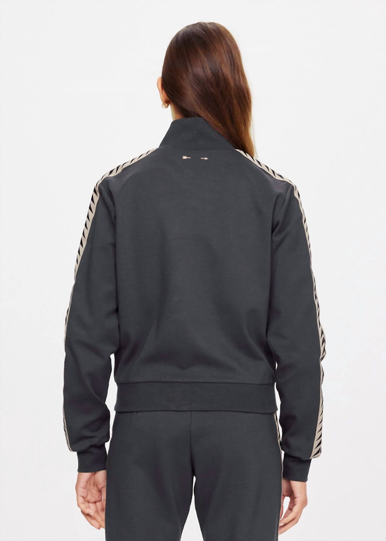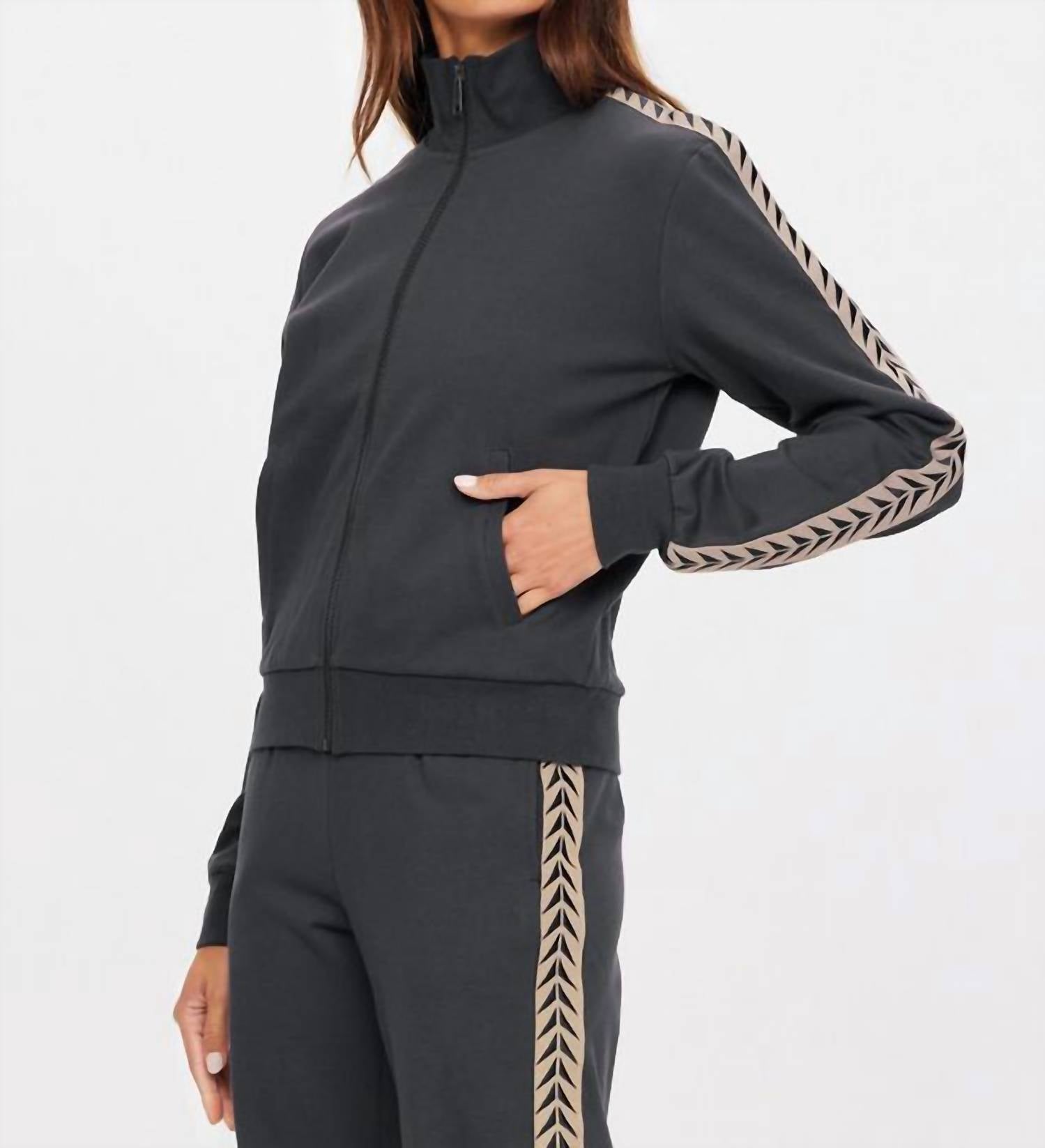 Step up your fashion game with the Ren Margot Jacket from THE UPSIDE, a chic addition to any wardrobe. Designed with long sleeves and crafted from a soft suiting blend of 65% Lenzing Viscose, 30% Polyamide, and 5% Elastane, this jacket ensures comfort and style with its arrowhead tape detailing and welt pockets. Featuring a mock neck and a convenient zip closure, it embodies a sophisticated stripe pattern in classic hue. For best results, maintain it with a cold gentle machine wash, hang dry in shade, and avoid tumble drying or ironing. Model wears an AU XS (UK 8, US 4, EU 34) and is 170cm/5ft 7in tall.