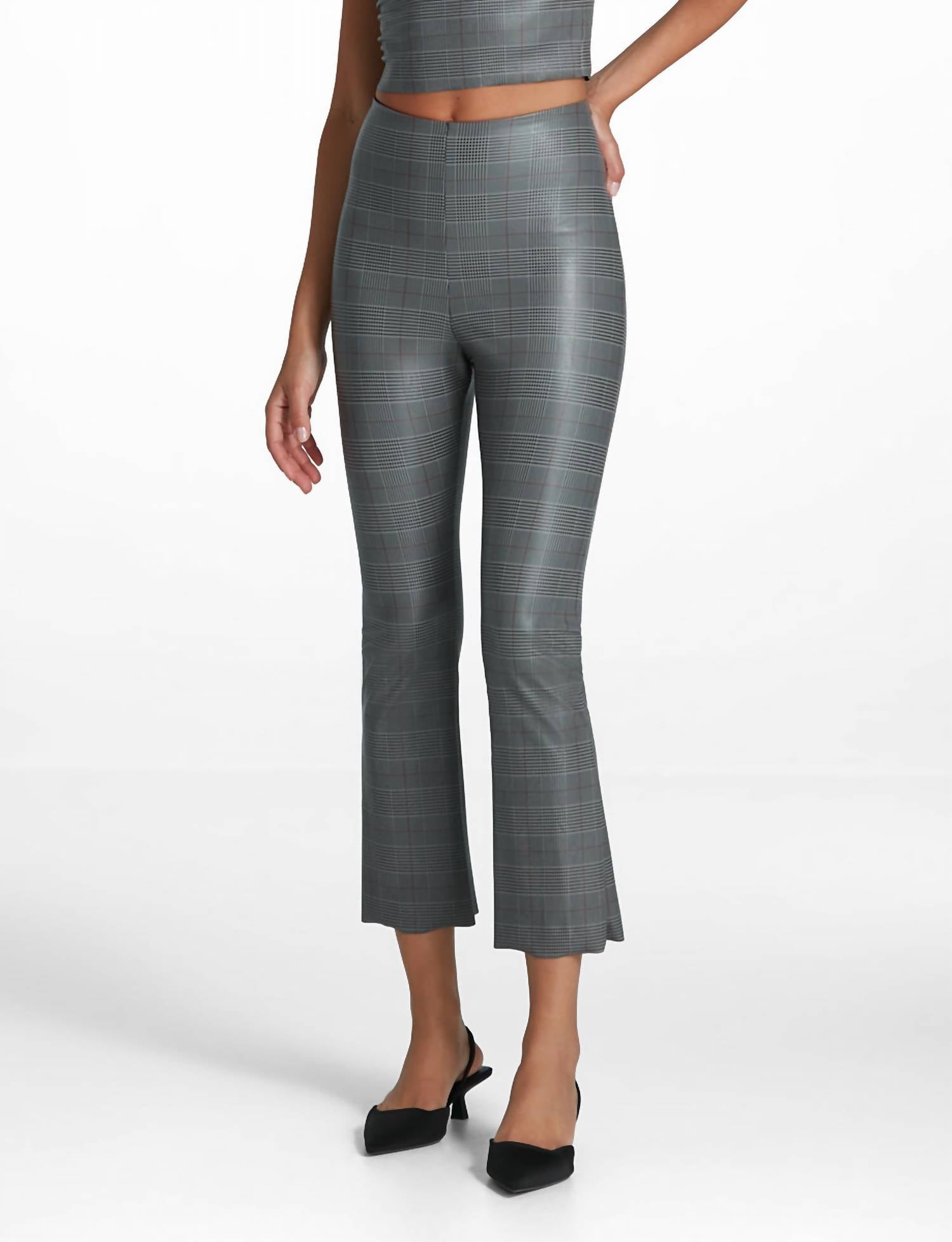 The legging you didn't know you needed and you won't want to take off. Discover the Faux Leather Cropped Flare by Commando, tailored for the modern woman who loves a chic plaid look. Crafted from luxurious viscose, these flared leg leggings boast a stylish Glen Plaid pattern and a high-rise waist. With a convenient pull-on closure, they ensure a seamless fit for any figure. Care: Machine wash.