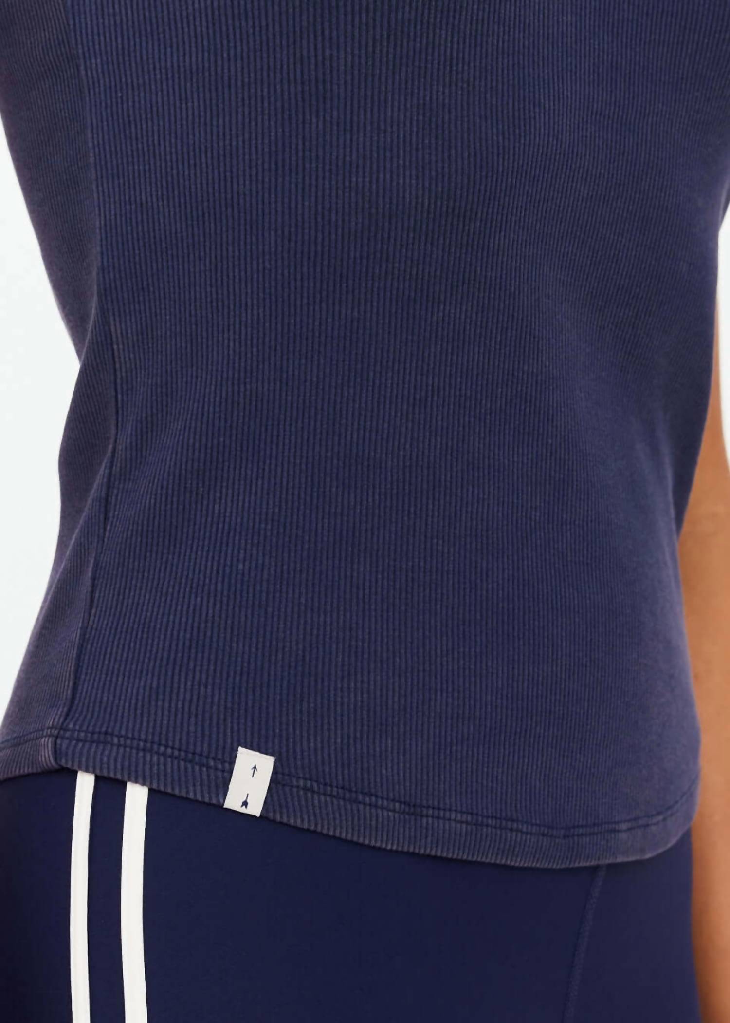 The perfect tank top for those warmer weather seasons. Embrace style and comfort with THE UPSIDE's Asher Racerback Tank Top, crafted from 100% organic cotton in a washed denim blue hue. This sleeveless tank features a racer back shape, higher neckline, and a slim fit, making it perfect for yoga workouts and layering. With a pull-on closure, it's designed for easy wear and flexibility. Care instructions include a cold machine wash with similar colors and hang drying in the shade. Model Dom wears an AU XS (UK 8, US 4, EU 34) and measures 170cm in height with a bust of 78cm.