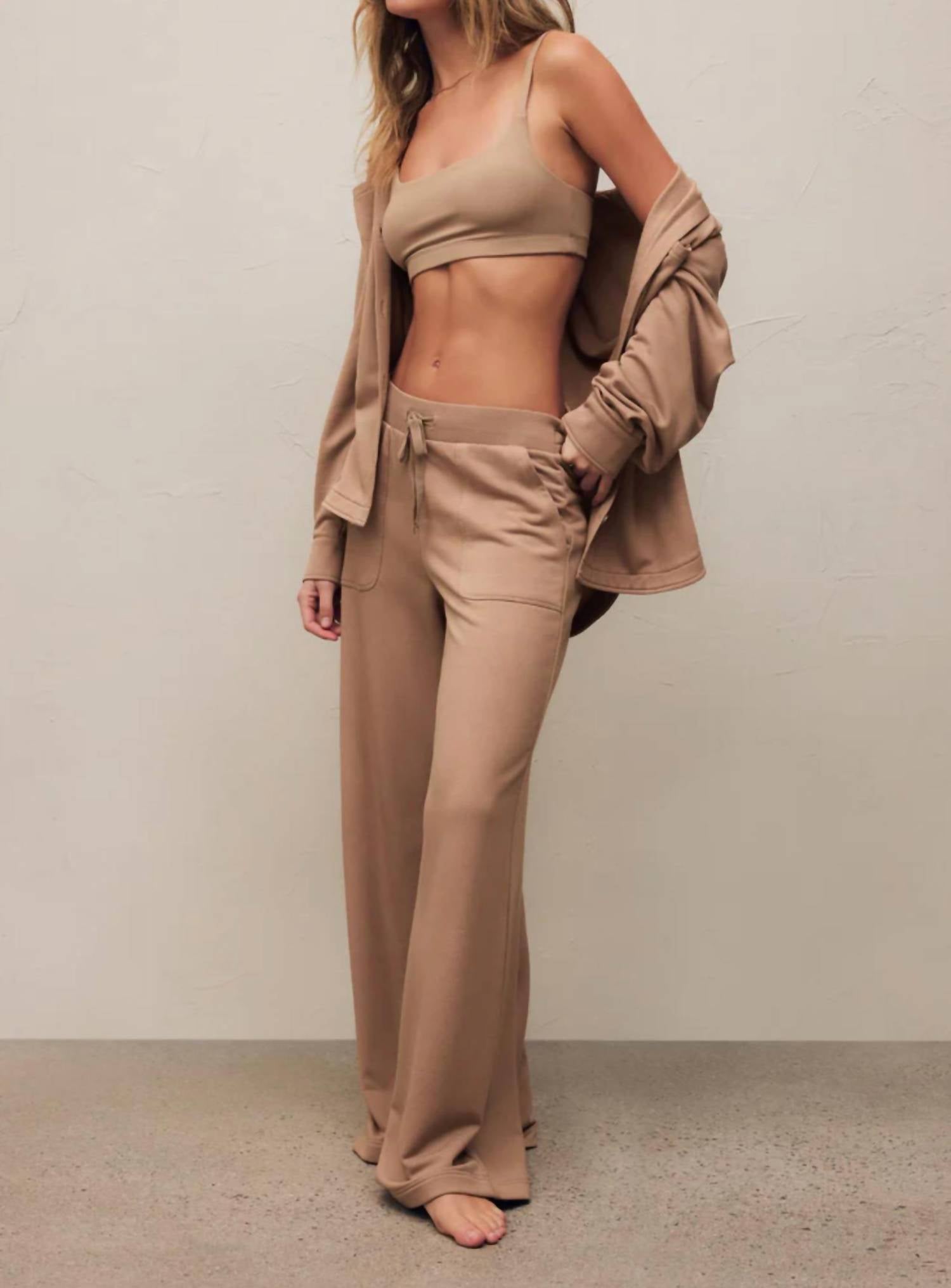 The most comfortable and supportive sports bra you'll own. Introducing the Luxe Smooth Jersey Bralette by Z Supply, your ultimate minimalist sports bra in Desert Taupe. This sleeveless design features a scoop neck and adjustable straps for a tailored fit, ensuring comfort and support during workouts. It's composed of Luxe Smooth Jersey, made from 90% Polyamide and 10% Spandex, with a lightweight and soft feel. Care is effortless with machine wash instructions and lay flat to dry. Perfect for a fitness or workout occasion.