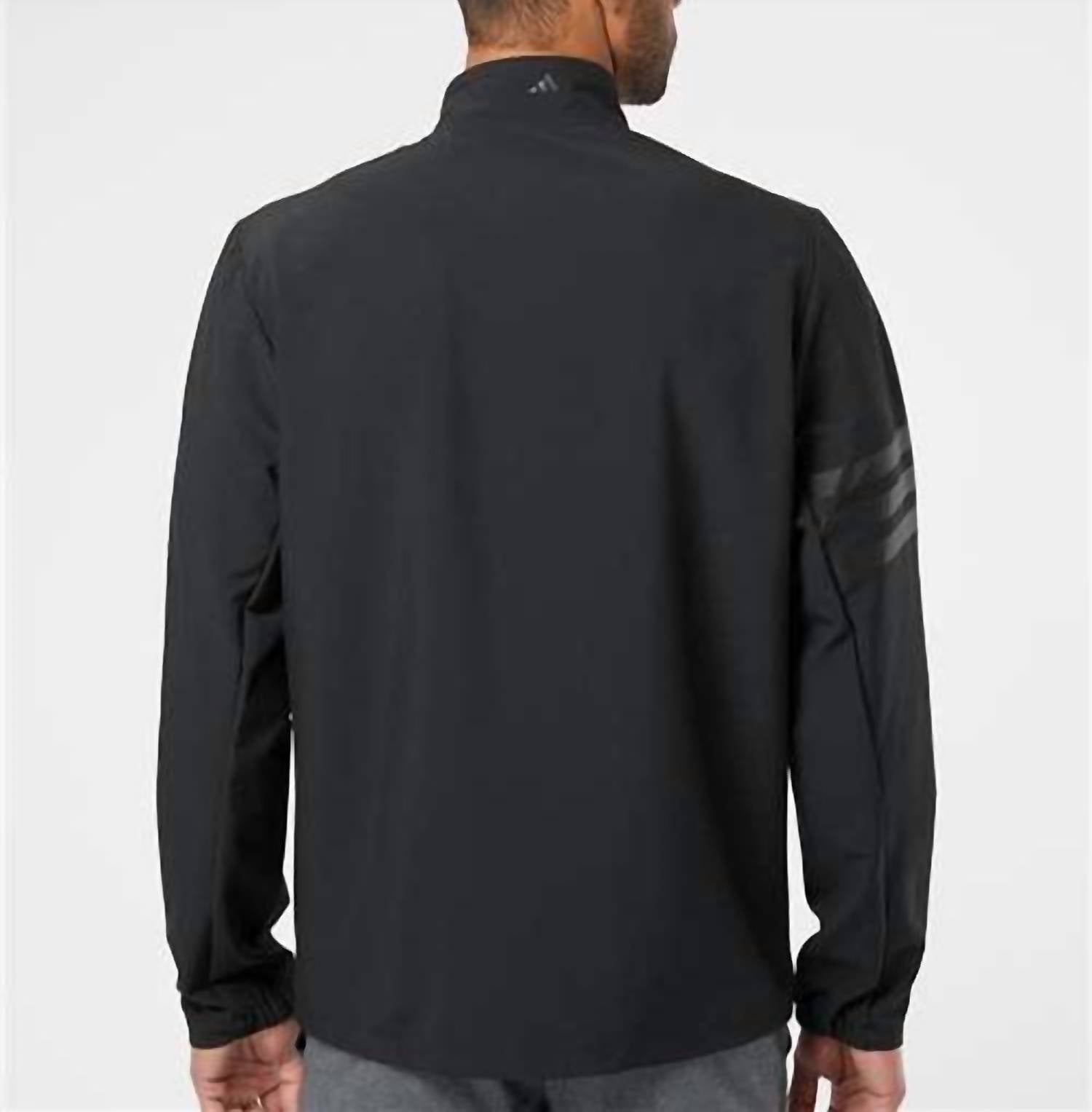 This jacket features a durable water-repellent finish to help keep you dry in light weather conditions. Made from soft shell stretch fabric, it allows for easy movement and a comfortable fit. Designed with half elastic cuffs for a secure feel and two front zip pockets for convenient storage. Finished with sporty contrast details and subtle striping on the arm for a modern, athletic look.
