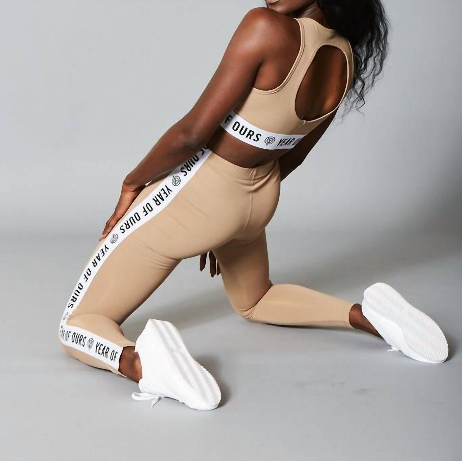 So comfortable you can sleep in it, lounge in it, or work out in it. Elevate your workout wardrobe with the New Open Back Sports Bra by YEAR OF OURS, designed for women seeking both style and functionality. Crafted from an 80% Nylon and 20% Spandex Active Jersey, this solid beige bra offers a snug and supportive fit perfect for any fitness occasion. Made in the USA, it features an open back design providing expanded coverage that easily transitions into a chic crop top. Care for it with a machine wash cold and lay flat to dry. Model wears size small.