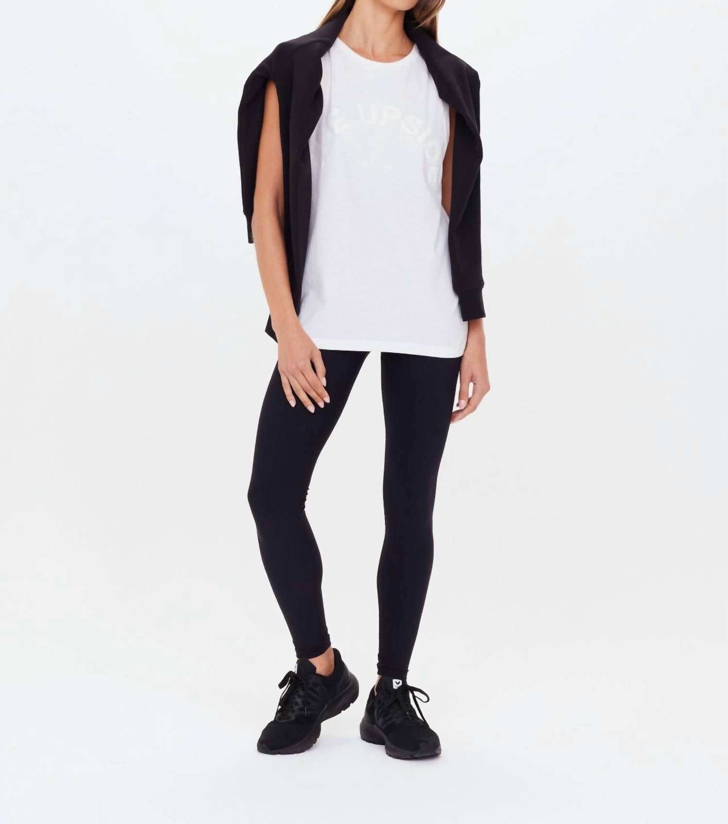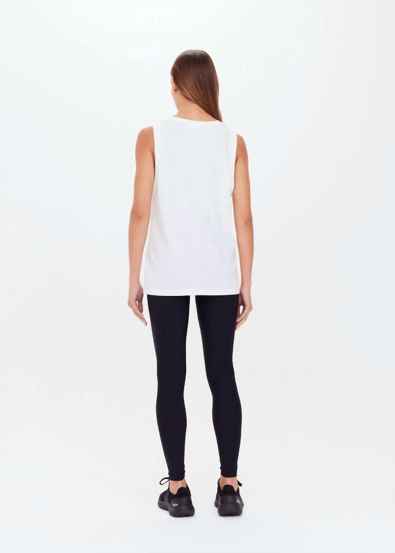This classic tank top is perfect for layering and cute enough to wear on its own. Introducing the Jeet Tank Top by THE UPSIDE, a modern take on the classic muscle tank. This sleeveless top is crafted from 100% organic cotton jersey in a fresh white hue, featuring a solid pattern and a printed tonal Horseshoe logo. Designed with a relaxed fit and folded detail, it offers a chic minimalist style perfect for summer vacations. The pull-on closure and crewneck complete this essential activewear piece, which is easy to care for with machine wash and line dry instructions.