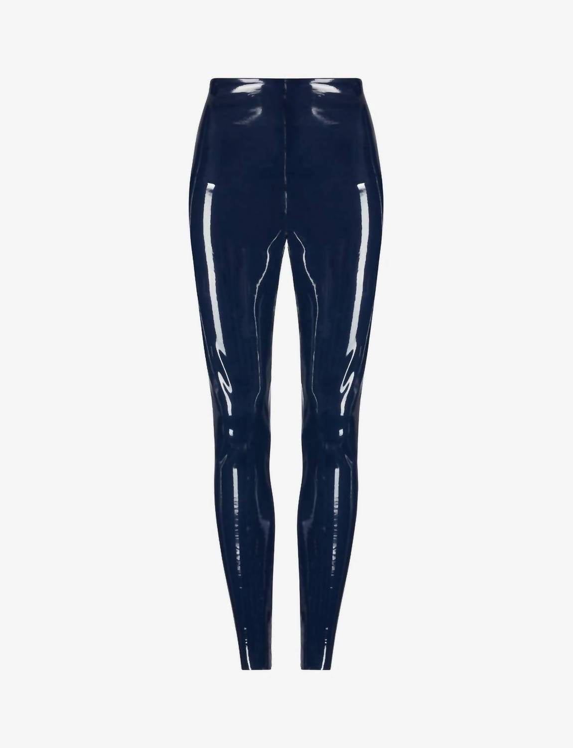 Leggings you can dress up or down for any occasion. These high-shine leggings are made from a four-way stretch patent fabric with excellent recovery. They feature a signature smoothing internal waistband and a flattering high-rise fit, along with a raw-cut hem for a modern edge. Fit-tested on real women, they offer both style and comfort. The leggings are composed of 62% polyurethane, 36% viscose, and 2% elastane for the legs, and 78% nylon and 22% elastane for the waistband.