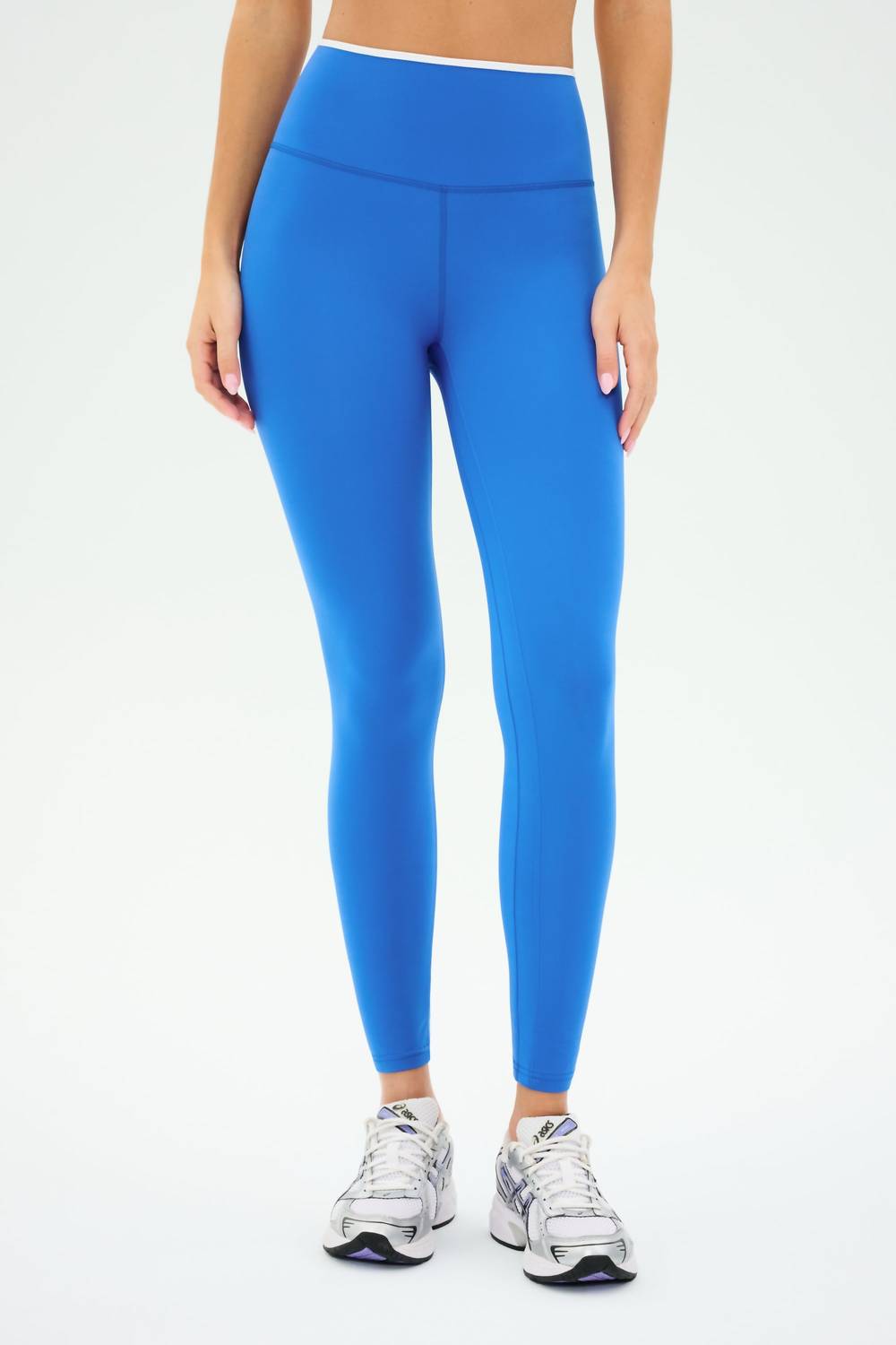 The legging you didn't know you needed and you won't want to take off. Elevate your workout wardrobe with the SPLITS59 Easton Rigor High Waist Leggings in Classic Blue/White. These 7/8 length leggings offer a high waist for support and shaping, enhanced by gently compressive Rigor fabric. Made from a blend of 62% Nylon and 38% Spandex, they are designed without pockets and feature a pull-on closure for convenience. Perfect for a range of high-impact workouts, these leggings are easy to care for with machine wash and tumble dry instructions.